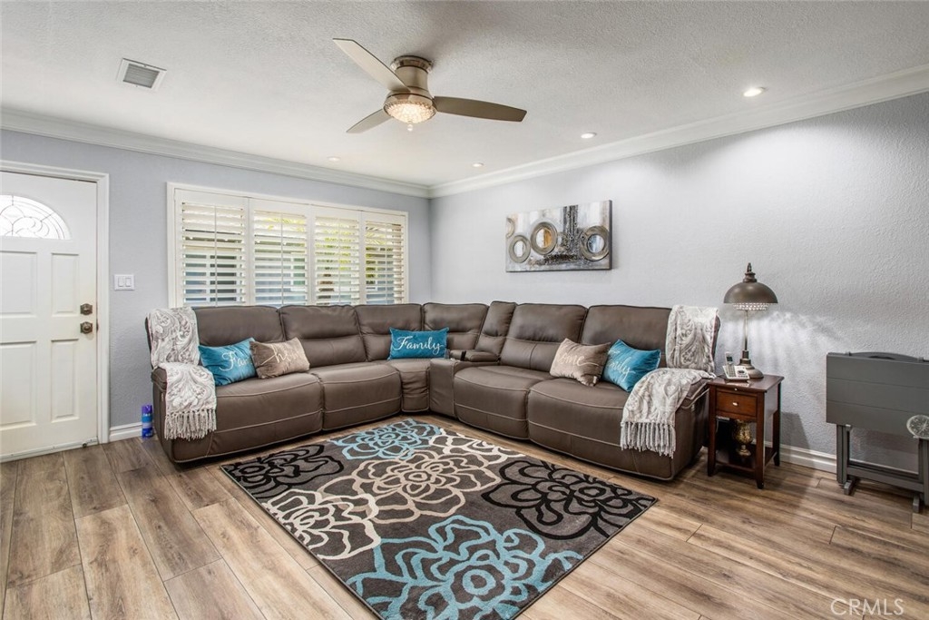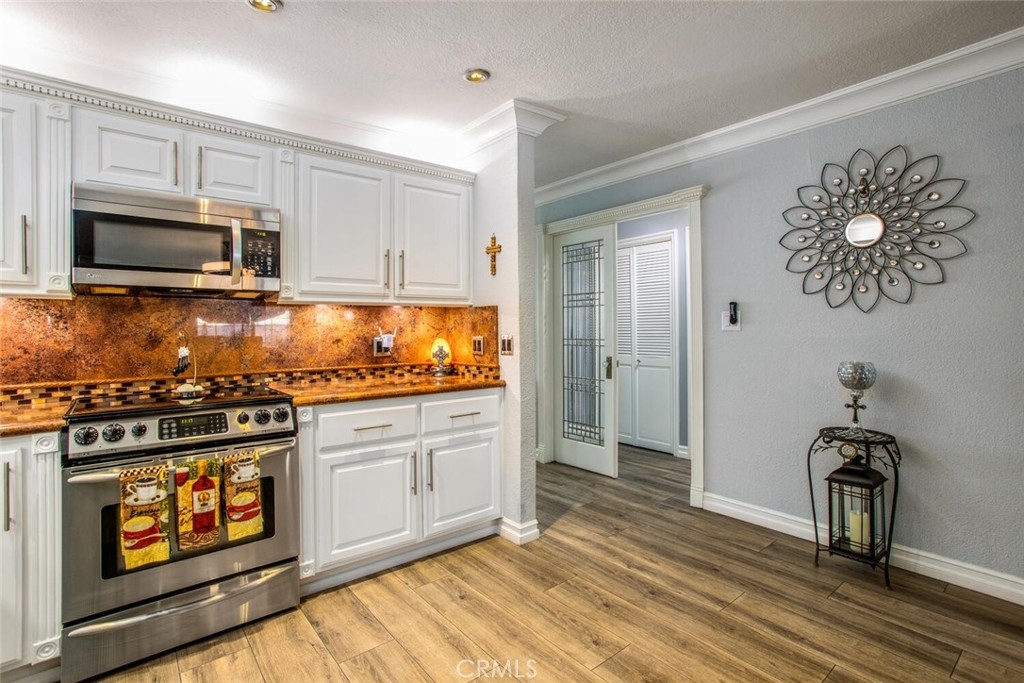 Not a model home—but you’ll think it was! Best-in-community end-unit condo with too many upgrades to list, at an ideal location in a phenomenal school district! Central AC, in-unit laundry, and modernized fixtures are just a few of the many items that render this home a completely unique living experience. Living room full of natural light where you will first notice the louvred shutters, recessed lighting, exceptional crown and base molding, engineered wood floors, and modern ceiling fans and fixtures that you will find throughout the home. The living room flows seamlessly to a fully updated kitchen with granite counters and backsplash, custom cabinets, and stainless steel appliances, as well as an additional family/dining area with distinctive tiled fireplace and patio exit. Passing through the French-door entry to the private bedroom wing, you will find in-unit laundry as well as bedroom suites on either end. Both full bathrooms feature head-to-toe renovations, with tiled shower enclosures, in-shower lighting, and rainfall shower fixtures. Master suite also exits to private tiled patio. A peaceful, highly-maintained community grounds offer walking paths/dog paths, sparkling pool, BBQ/cabana area, and clubhouse as well as wide-open green spaces. Ideal OC location near the 22, 55, and 5 freeways as well as walking distance from coffee, groceries, and shopping. Highly renowned Tustin Unified School District, including Foothill High School! Perfect for the commuter, professional, downsizer, or small family—this community loves its neighbors, and you will love this community!