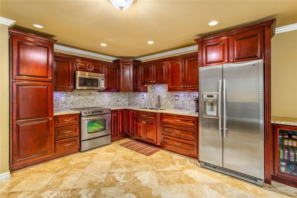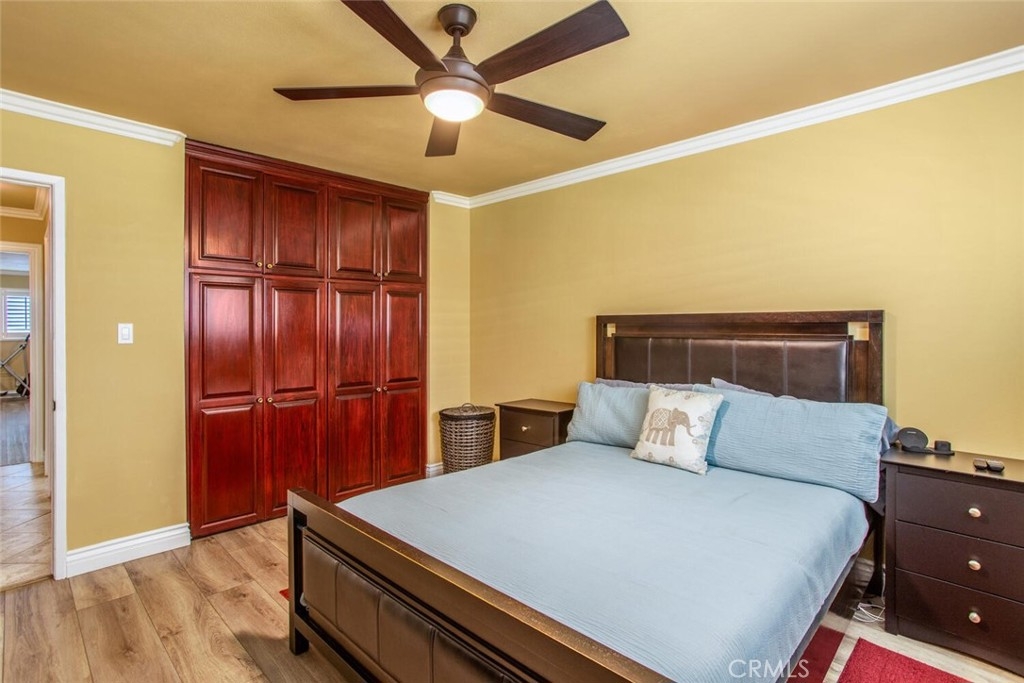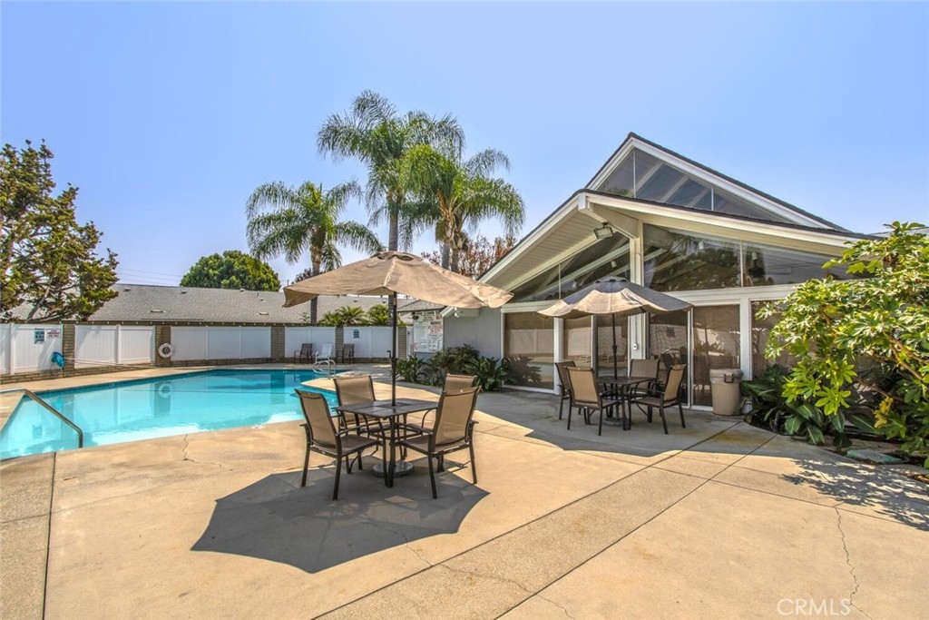Wonderful, heavily-upgraded end-unit condo, at an ideal location in a phenomenal school district! Wide-open living room where you will first notice the louvred shutters, recessed lighting, exceptional crown and base molding, cooling Mediterranean tiled flooring, and modern ceiling fans and fixtures that you will find throughout the home. The living room flows to a fully updated kitchen as well as an additional family/dining area with distinctive tiled fireplace and patio exit highlighted by sliding shutter doors. Passing through the French-door entry to the private bedroom wing, you will find in-unit laundry as well as bedroom suites on either end. Both full bathrooms feature complete head-to-toe renovations, with tiled shower enclosures, in-shower lighting, and rainfall shower fixtures. Master suite also exits to private patio with decking. A peaceful, highly-maintained community grounds offer walking paths/dog paths, sparkling pool, BBQ/cabana area, and clubhouse as well as wide-open green spaces. Ideal OC location near the 22, 55, and 5 freeways as well as walking distance from coffee, groceries, and shopping. Highly renowned Tustin Unified School District, including Foothill High School! Perfect for the commuter, professional, downsizer, or small family—this community loves its neighbors, and you will love this community!