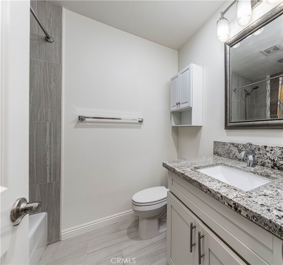 Welcome home to Woodside Village in South Coast Metro! This 2 bedroom, 2 bathroom end-unit condo is incredibly immaculate boasting modern upgrades and a spacious and efficient floorplan. Open the front door to be met by a large, naturally brightened living room and open concept kitchen. Newer tile flooring, central HVAC, Nest Thermostat, and recessed lighting flow throughout the home. Enjoy your meals on the coffee bar complete with pendant lighting. Gorgeous granite counters, glass inlay/tile backsplash, and white shaker style cabinets are beautifully showcased in the kitchen, Stainless steel appliances include an electric range/oven, microwave, and dishwasher. A large patio slider is featured in the living room providing access to the outdoor patio, perfect for indoor/outdoor entertainment. Off the hallway are the full bathroom, second bedroom, linen station, and the primary suite. Large with a private en suite, the primary bedroom boasts plenty of space and an expansive 3-panel mirrored sliding door closet. A shower-in-tub, granite counter, and ceramic tile walls with glass tile inlay are presented in the hallway bath. The en suite bathroom has matching finishes with a stand-alone shower featuring floor to ceiling tile and a glass shower door. Use the second bedroom for guests or turn it into a work-from-home office. Well maintained, the Woodside Village community has lush greenbelts, a sparkling pool, a relaxing jacuzzi, 1 covered carport space with additional storage, 1 parking permit, and a community laundromat. Prime location means you are only minutes away from great shopping, entertainment, and eateries such as South Coast Plaza, Metro Pointe, The Camp, The Lab, Ikea, Maggiano’s, Morton’s Steakhouse, Karl Strauss Brewery, Target, Segerstrom Center of the Arts, and much more! Within close proximity to the 405, 55, and 73 FWY.