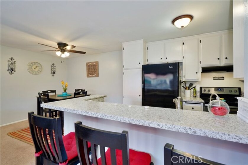 Come and see all this Santa Ana 3 bedroom 2 bath condo has to offer. This is a rare opportunity to own one of the few 3 bedroom units in this complex. This unit is full of upgrades including newer toilets, new flooring in the kitchen and new carpet throughout. Every room has new light fixtures and ceiling fans. All new stove, dishwasher, and sink in the kitchen. New granite counter tops in the kitchen and bathrooms. The windows have new screens and covers as well as blackout shades for hot summer days. This unit has storage organizers in both the master closet and kitchen pantry. The whole unit was recently re-wired with new electrical wiring and panels. HOA includes water and gas. Unit has 2 parking spaces, 1 assigned carport space and 1 open permitted parking space.