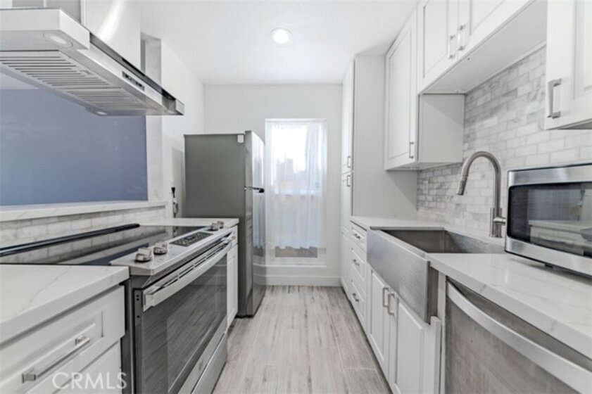 Welcome to this beautiful, updated lower-end-unit Jr. 1-bedroom condo—this one will move fast! The unit features a private sleeping area with a stylish barn door and ceramic tile flooring throughout, creating a modern and low-maintenance living space. Recent upgrades include lead and asbestos abatement, new baseboards, updated drywall, and new plumbing in both the kitchen and shower area. The kitchen and bathroom shine with quartz countertops, brand-new cabinetry, and brushed nickel fixtures throughout. Additional highlights include stainless-steel kitchen appliances, a range hood, a farmhouse sink, and a fully remodeled bathroom with a new vanity, mirror, toilet, designer acrylic shower walls, and a glass shower door with brushed-nickel accents. Located in the highly desirable, guard-gated MacArthur Village community, this condo is within walking distance of world-renowned South Coast Plaza. The unit boasts a large private patio, a rare feature at this price point—perfect for relaxing or entertaining on warm days. Community amenities are second to none, featuring three swimming pools, five spas, four lit tennis courts, a gym, basketball court, and volleyball court, offering resort-style living right at your doorstep. Situated in South Coast Metro—Orange County’s business and cultural hub—you’ll enjoy world-class dining, shopping, and entertainment, along with easy access to the 405, 55, 73, and 5 freeways. Don’t let this incredible investment opportunity pass you by!