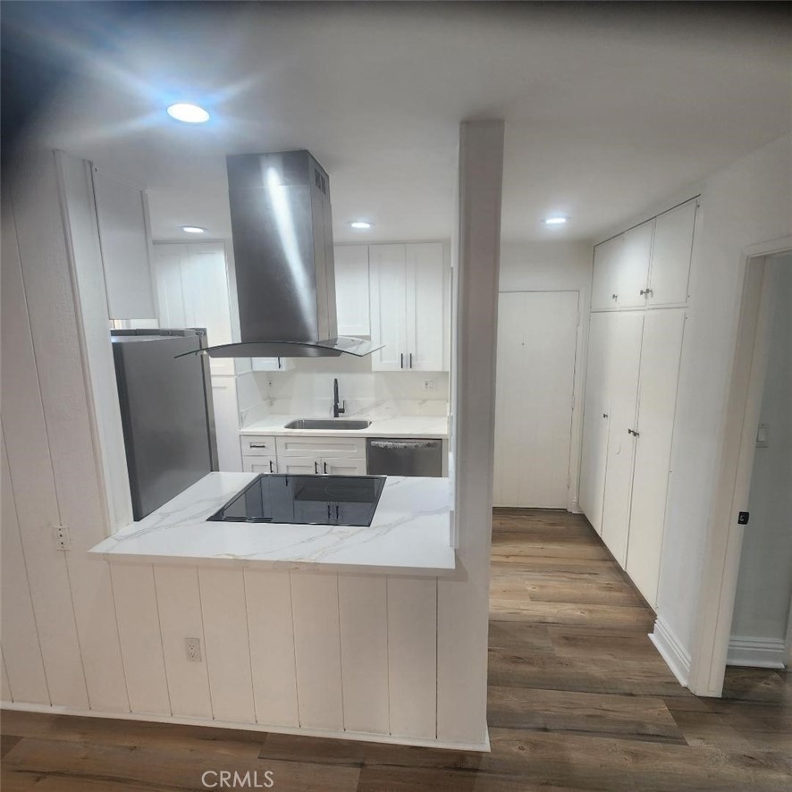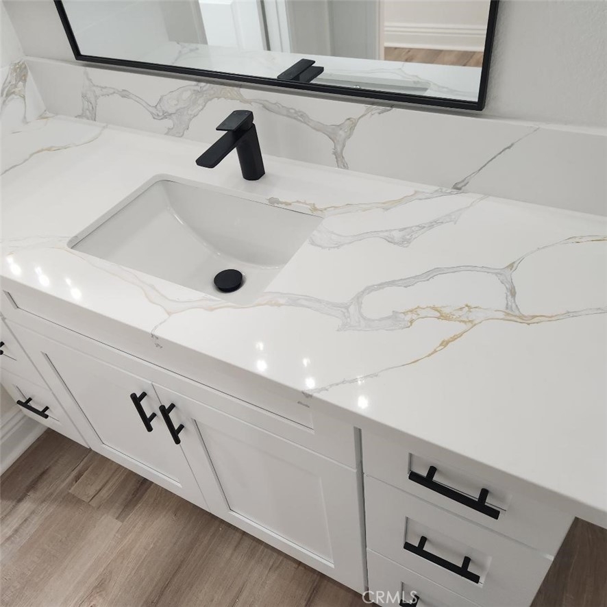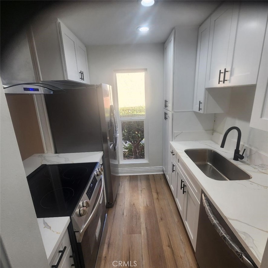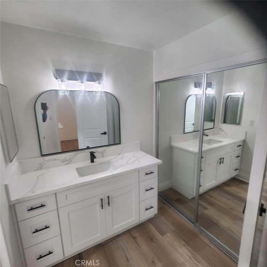 Stunning South Coast Metro Area Remodeled Studio Condo in the Macarthur Village Community . Features include lower end location with a peek pool area view , New Hardwood style Vinyl Plank flooring , new White Shaker Cabinetry , New Double Pane Vinyl Windows & Slider , freshly painted , aprx 504 sq ft , New White Calacatta style Quartz counters , full bath has a vanity area with shower in tub / new shower walls / mirrored closet doors , full kitchen has a breakfast bar / new stainless appliances including ; dishwasher / refrigerator / slide in electric range stove oven / island style exhaust fan / new stainless sink , ac / heat , living area has a queen size murphy bed / built in desk and cabinets , enclosed patio , hoa dues include gas / water / trash / sewer , carport has a storage locker , 24 hour gate guarded Macarthur Village community offers 5 pool and spa areas / 4 tennis courts ( one lined for pickleball ) / gym / clubhouse / laundry rooms / basketball court / barbeques , one block to South Coast Plaza / fine dining / movies .
