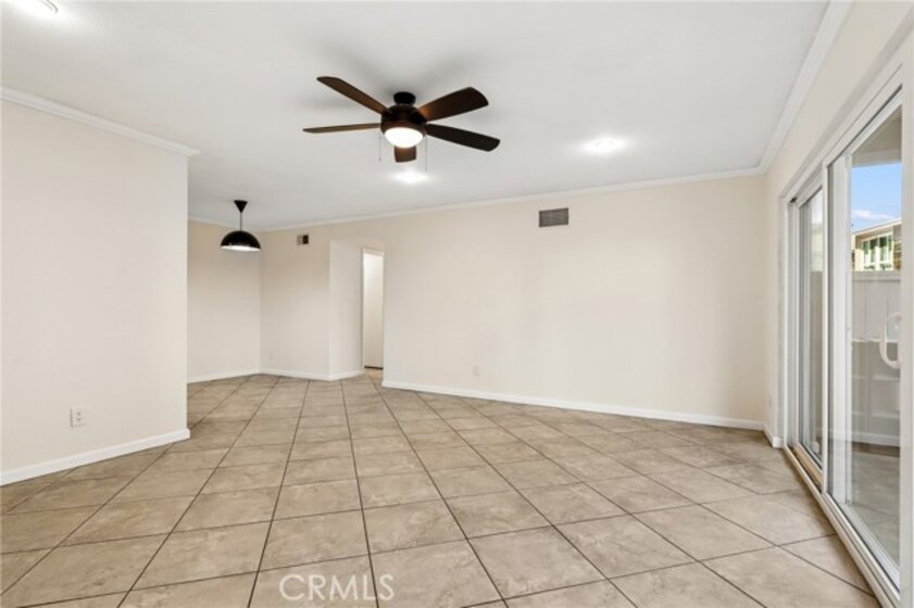 Welcome to this charming first-level, single-level condo in the desirable Redwoods community of Santa Ana. This inviting home features recessed lighting and elegant crown molding throughout, creating a warm and polished ambiance. The living space opens through sliding doors to a private, spacious enclosed patio—perfect for relaxing or entertaining. Residents enjoy access to resort-style amenities including a pool, spa, barbecue area, gym, clubhouse, and beautifully maintained greenbelts with scenic walking paths. HOA dues conveniently cover gas, water, sewer, and trash. Ideally located near the 55 and 22 freeways, this home offers easy access to nearby shopping, dining, and everyday conveniences—making it a perfect blend of comfort and accessibility.