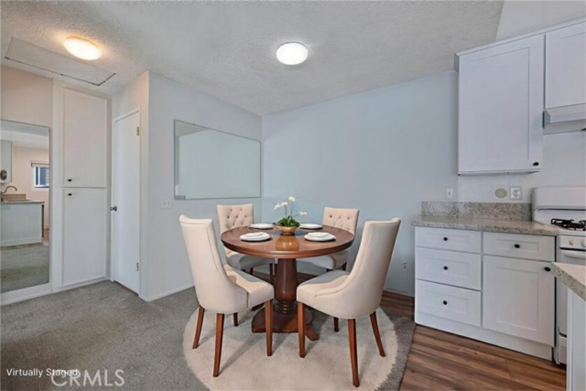 Motivated seller — exceptional opportunity. Welcome to The Redwoods, a highly desirable, resort-style community featuring two pools, spa, tennis courts, gym, and clubhouse, all set among mature trees and lush landscaping. This single-story, upstairs one-bedroom, one-bath home offers a private balcony, carport parking, and tasteful upgrades, including a newer kitchen, windows, and bathroom. Centrally located near freeways, shopping, and dining. Priced to sell — don’t miss this opportunity. In addition, HOA includes, trash, water, gas and sewer. Some photos have been virtually staged to show potential.