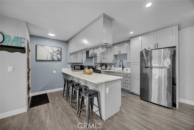 Welcome to South Coast Villas, a beautiful, gated community in the heart of Santa Ana! This Turnkey lower-level Condo features two spacious bedrooms, and one fully remodeled bathroom, perfectly blending comfort, style, and functionality. Thoughtfully updated throughout, this perfect home showcases recessed lighting, new ceiling fans, modern finishes, and wood flooring, making it completely Move-In Ready! Enjoy an open and inviting floor plan that seamlessly connects the living, dining, and kitchen areas, creating an ideal space for both relaxing and entertaining. The beautifully upgraded kitchen is a highlight, featuring stainless steel appliances, a sleek range hood, quartz countertops and updated cabinetry...perfect for both everyday cooking and entertaining. The private patio offers a perfect spot for morning coffee or evening unwinding, with easy access to lush community grounds. Located in a highly desirable area, this gorgeous condo is just minutes from South Coast Plaza, Segerstrom Center for the Arts, World-Class Dining, Shopping, and convenient freeway access for easy commuting throughout Orange County. Residents of South Coast Villas enjoy an impressive list of HOA Amenities including sparkling swimming pools, a soothing jacuzzi, an amazing gym, play area, EV Charging Stations, and the peace of mind of a secured gated community. The HOA also covers Water, Gas & Trash Services, adding exceptional value and convenience! Whether you're a First-Time buyer, downsizing, or seeking an investment property, this beautifully updated condo offers the perfect combination of location, comfort, and value!