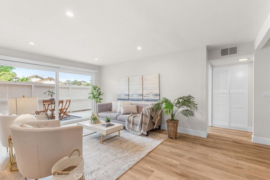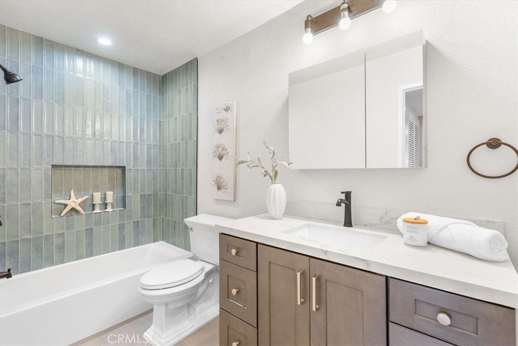 Welcome to this beautifully remodeled 1-bed, 1-bath 676 sq. ft. condo, located on the first floor. The kitchen features new cabinetry, quartz countertops, stunning tile backsplash, brand-new range, microwave/combo and dishwasher. The open layout flows effortlessly into the dining area and living room with new Luxury Vinyl Flooring, recessed lighting, fresh paint throughout and new central air and heat. The living room sliding door and windows are Title 24 compliant with Low-E glass to help with energy efficiency. The private enclosed patio is the perfect spot for grilling and entertaining guests. The large bedroom offers recessed lighting, spacious walk-in closet providing ample storage. The bathroom has also been thoughtfully remodeled, with a new tub/shower combo with luxury tile, new tile flooring, new Kohler toilet, a newer vanity with quartz countertop and matching backsplash. This home offers the convenience of an on-site laundry facility, two pools, jacuzzi, fitness center, and a gated community. Within walking distance to South Coast Plaza Mall, shopping, fine dining and movies. Minutes from Major freeways 55/405/73 and John Wayne Airport. This modern and stylish condo has been completely remodeled by Battres Construction Design Build Company known for their HGTV appearances and exceptional craftsmanship.