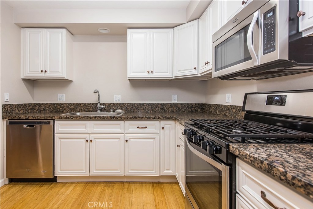 Welcome to Your New Home! 1250 Cabrillo Park, Unit A! This Lovely LOWER LEVEL, 1 STORY Condo in Cabrillo Park Won't Last Long! NEWLY REMODELED 1 Bedroom, 1 Bathroom. This Home Has Been Nicely Upgraded w/Bamboo Wood Laminate Flooring Throughout, Freshly Painted, Newer Baseboards, Newer Windows Throughout & Wood Blinds. The Kitchen Was Re-Designed & Expanded For a More Open Feel, Featuring Granite Counters, New White Raised Panel Cabinets w/a Pantry & Butcher Block Planning Desk, Lazy Susan Corner Cabinet, Oversized Stainless Steel Sink, Newer Whirlpool Stainless Steel Appliances Including a Freestanding 5 Burner Gas Stove, Space Saver Microwave & Dishwasher. The Large Living Rm Has a Brick Fireplace w/Ceramic Gas Logs & Ceiling Fan. Large Master Bedroom w/Ceiling Fan & Storage Unit in the Closet. The Spacious Bathroom Features a Hanging Rack that Can Be Enclosed For a Second Closet, New Wood Look Tile Flooring, a White Vanity w/Granite Counters, New Light Fixture, Freestanding Linen Cabinet & Walk-In Shower w/Handicap Rails. The Front Enty Offers a Covered & Enclosed Courtyard Patio w/Storage Closet. This Unit is Just Steps To the Newer Laundry Facility (digital card system), Pool, 3 Spa's, Gym & Club House. Located In The Award-Winning Tustin School District, Foothill High School, Guin Foss Elementary & Columbus Tustin Middle. Minutes to Shopping, Restaurants, Parks, Entertainment & Freeways. GAS/WATER/TRASH INCLUDED IN HOA DUES. Lots of Parking Around the Community.
