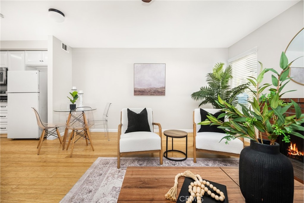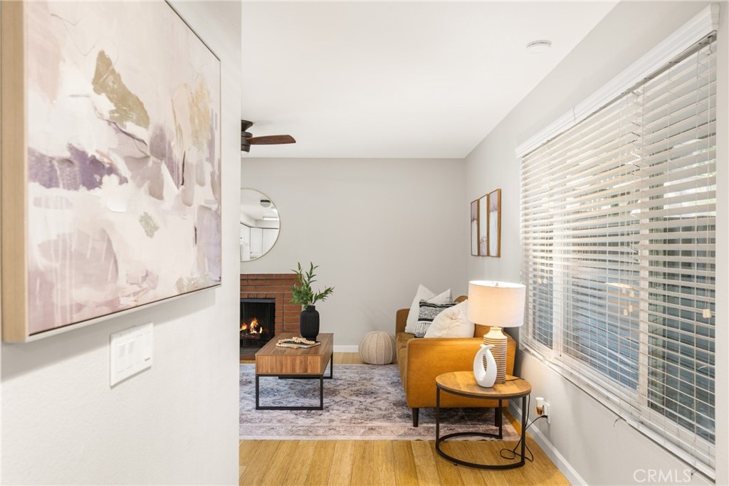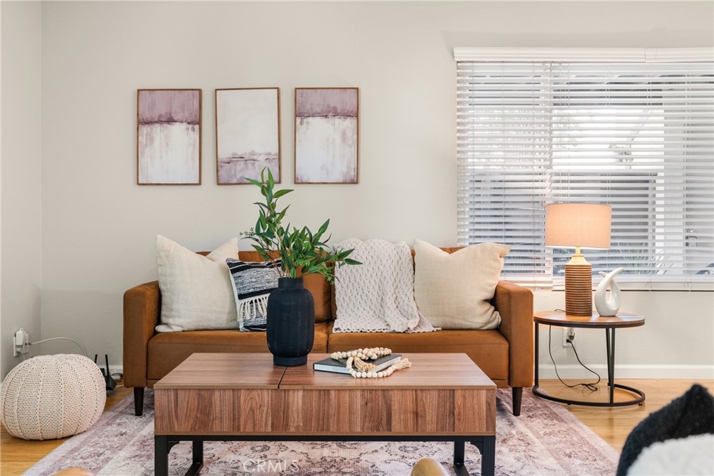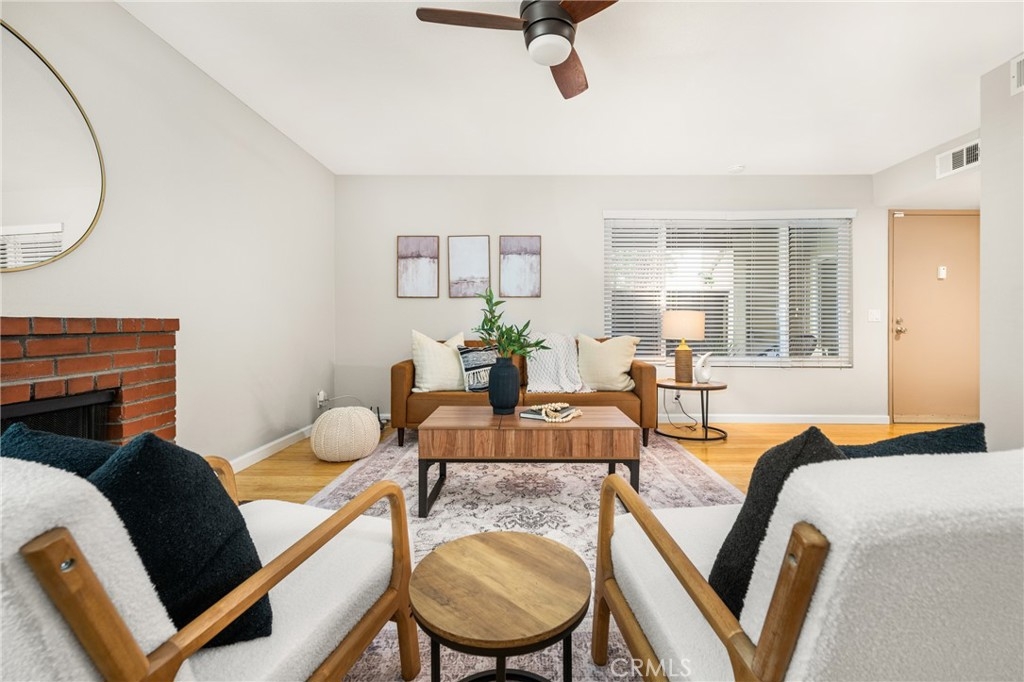 Main floor corner unit in the Cabrillo Park Townhomes in Santa Ana on the border of Tustin. A hidden gem in a quiet neighborhood right off of the 55 and 5 freeways with easy access to schools, shopping, grocery, and dining. Enjoy spacious one bedroom and one bathroom with 694 sqft with central air and heating. The complex has water streams running throughout; surrounded by mature trees, and lush greenbelts. Cabrillo Park Townhomes are well maintained and manicured. Pet-friendly complex, a community pool, club house, 3 spas, a recently upgraded gym and 2 laundry facilities. The property features bamboo flooring and a spacious white kitchen with ample counter space and a large pantry. Other recent upgrades include, double pain windows, an oversized kitchen sink, stainless steel appliances, and granite countertops. Family room features a brick fireplace. This home has a closet in the master, in addition, a bonus closet in the large bathroom. The bathroom has an oversized shower with a porcelain tile floor. A private covered front patio with a storage closet allows you to enjoy time outside and is ideal for all your entertaining needs. Convenient location in the complex close to laundry and it comes with one parking carport close to the unit #301 with storage. HOA covers water, trash, and gas for just $370.19. Conveniently close to the 22 freeway and belongs to award winning schools, Tustin unified - including Foothill High School.