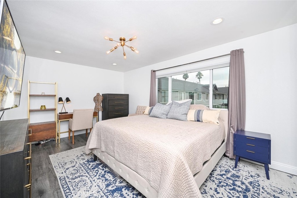 Beautiful 1 bedroom unit in Brightwood Square. From top to bottom, this unit has been modernized and upgraded! Recent upgrades include, French Grey Laminate flooring, Dual Paned Windows, HVAC System and A/C with wifi thermostat, Tankless Water Heater, water treatment filter, and scraped Ceilings with dimmable recessed lighting. The fully remodeled kitchen includes custom cabinetry with soft close cabinets and drawers, pantry, granite counters and stainless steel appliances. The remodeled bathroom has custom cabinetry with soft close drawers, quartz countertop, and the shower is equipped with a bluetooth speaker shower vent with LED lighting. The large bedroom has two closets and black-out accordion blinds. The Laundry room at the top of the stairs has a solid wood barn door and has storage for all your laundry needs. Low HOA Dues and Located in a great area of Santa Ana, close to Floral Park, Downtown, Shopping and Museums, you will not be dissapointed. No one above or below!