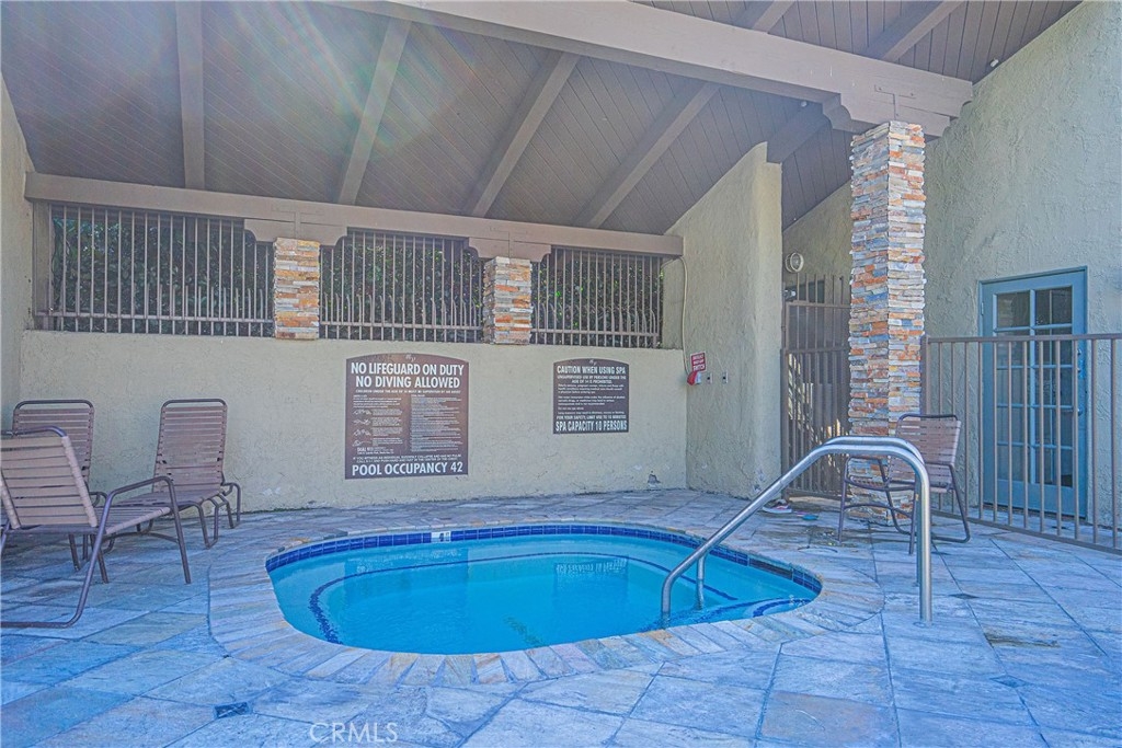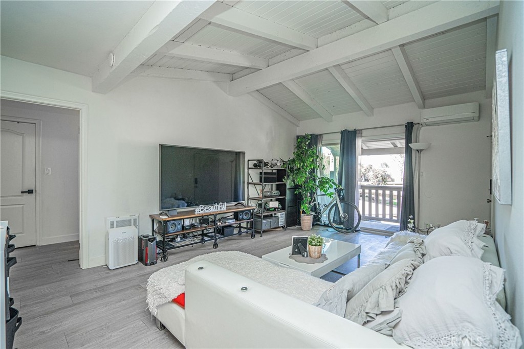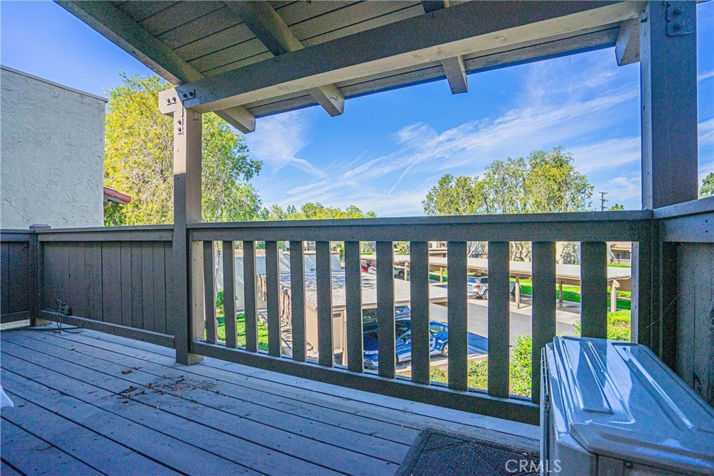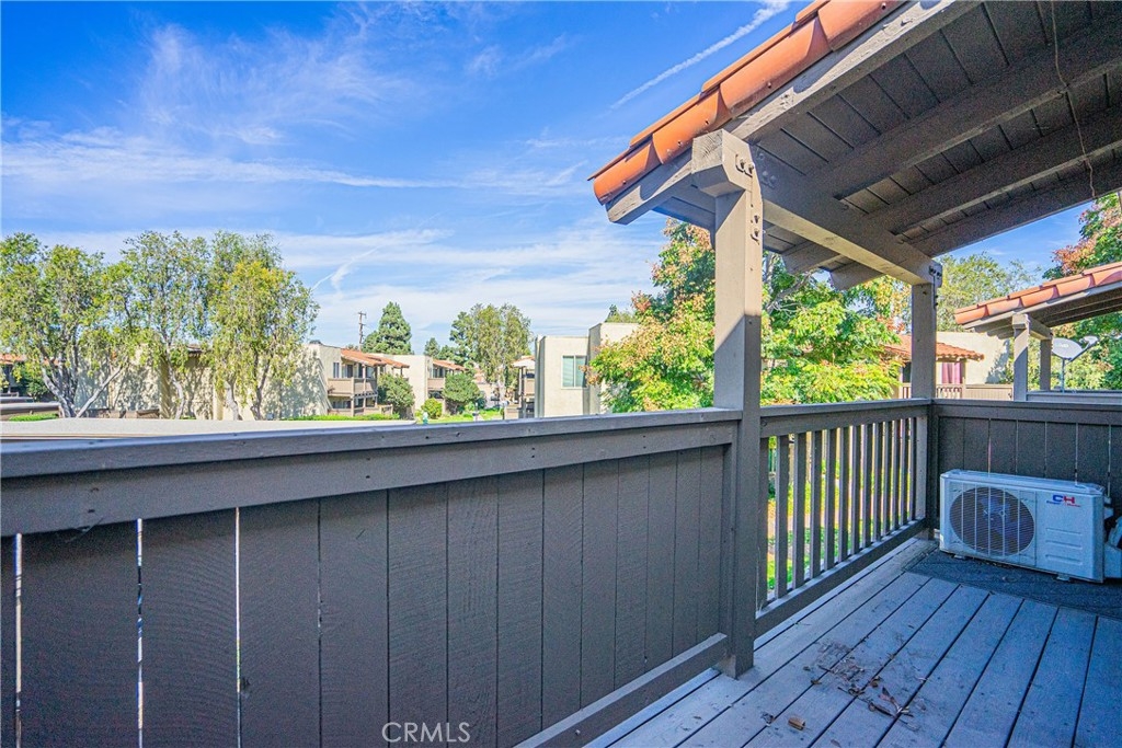 Welcome to your dream condo in the vibrant at Monterey Villas of Santa Ana! Desirable Life here in this gated community of Monterey Villas! This resort style 1 bedroom, 1 bathroom unit is a perfect blend of comfort and style, designed for a modern and convenient. Property located on 2nd floor level, and this location provides great privacy view. Enter upstairs into a cozy, spacious Great Room with soaring Vaulted Wood-Beamed Ceilings, Dining Area & Kitchen. Black granite Kitchen Counters, lots of Cabinets with good size storage, a Pantry & Appliances. Enjoy the opening above the sink that looks out into the Great Room. The large, serene Bedroom has a Walk-in Closet, open to a sink with Granite Countertop and a separate room for Tub & Shower with rain shower & hand shower head in restroom. Designed sliding door for restroom. A huge bonus is the newer Dual-Paned Windows and the Sliding Glass Door to the Deck to enjoy outside living. Multiple on-site laundry facilities with 12 washers and dryers, Pool & Spa, Tennis Courts, Fitness Room, Clubhouse and peaceful Greenbelts. The HOA fee covers your trash, sewer and water. There’s one assigned covered 1 carport close to the unit with storage locker. The Complex is located close to Tustin & Orange and within the boundaries of award-winning Tustin schools. Close by is Cabrillo Park which has a new outdoor exercise facility and walking distance to great Restaurants, Shopping & Supermarkets. Short distance to the 5 and 55 Freeways. Don't miss this move in ready great your future home.