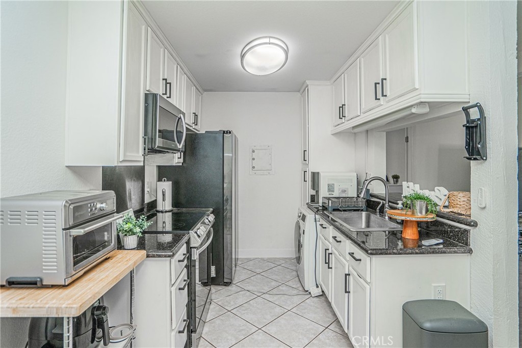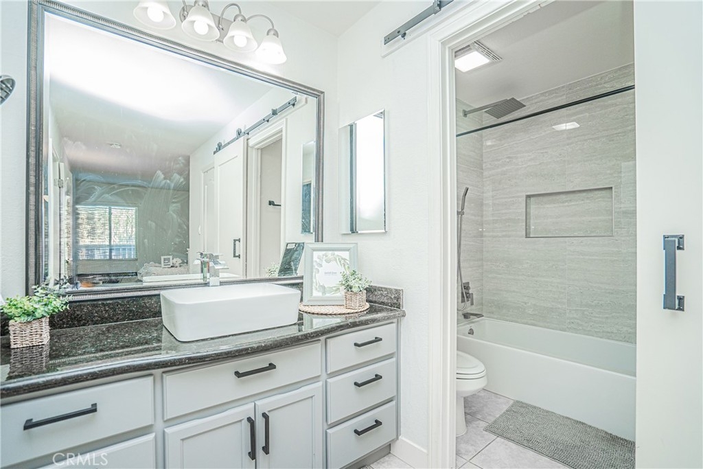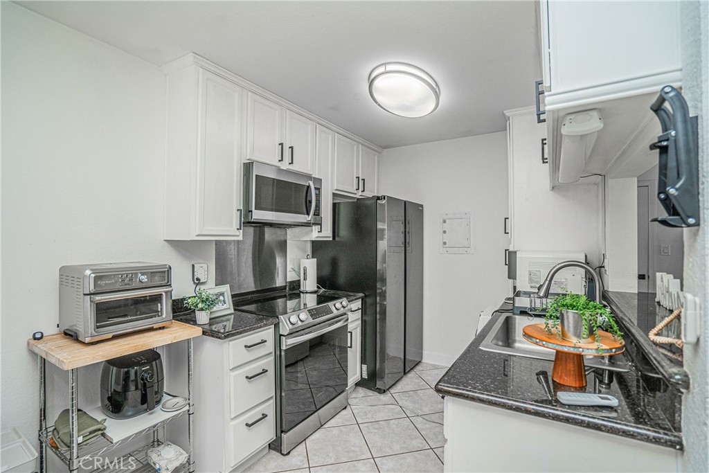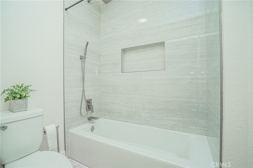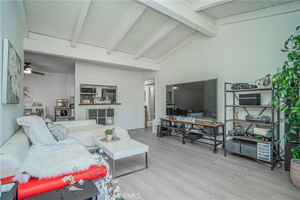 Welcome to your dream condo in the vibrant at Monterey Villas of Santa Ana! Desirable Life here in this gated community of Monterey Villas! This resort style 1 bedroom, 1 bathroom unit is a perfect blend of comfort and style, designed for a modern and convenient. Property located on 2nd floor level, and this location provides great privacy view. Enter upstairs into a cozy, spacious Great Room with soaring Vaulted Wood-Beamed Ceilings, Dining Area & Kitchen. Black granite Kitchen Counters, lots of Cabinets with good size storage, a Pantry & Appliances. Enjoy the opening above the sink that looks out into the Great Room. The large, serene Bedroom has a Walk-in Closet, open to a sink with Granite Countertop and a separate room for Tub & Shower with rain shower & hand shower head in restroom. Designed sliding door for restroom. A huge bonus is the newer Dual-Paned Windows and the Sliding Glass Door to the Deck to enjoy outside living. Multiple on-site laundry facilities with 12 washers and dryers, Pool & Spa, Tennis Courts, Fitness Room, Clubhouse and peaceful Greenbelts. The HOA fee covers your trash, sewer and water. There’s one assigned covered 1 carport close to the unit with storage locker. The Complex is located close to Tustin & Orange and within the boundaries of award-winning Tustin schools. Close by is Cabrillo Park which has a new outdoor exercise facility and walking distance to great Restaurants, Shopping & Supermarkets. Short distance to the 5 and 55 Freeways. Don't miss this move in ready great your future home.