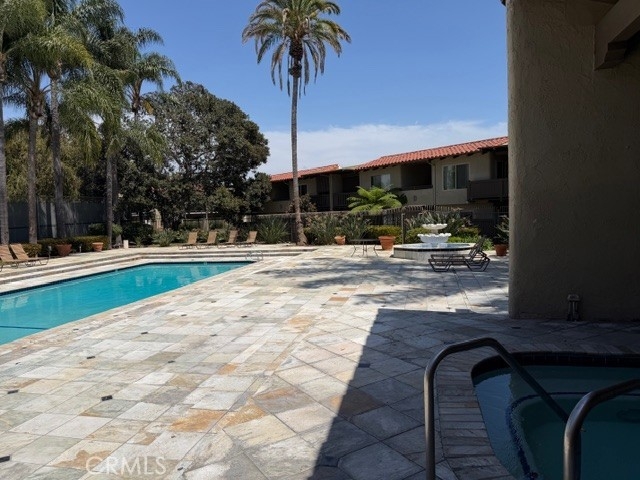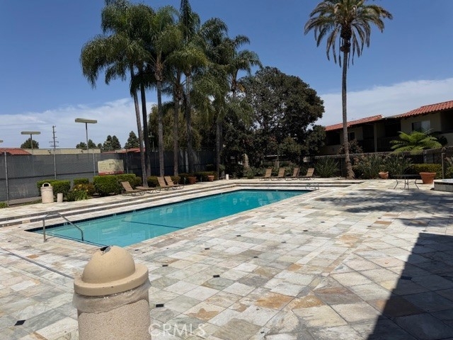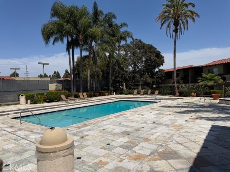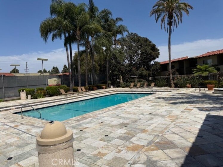 Step into this charming upper-level condominium in the desirable Monterey Villas community of Santa Ana, where comfort and convenience come together beautifully. Offering 696 square feet of thoughtfully designed living space, this one-bedroom, one-bath home is the perfect retreat in a vibrant and well-located neighborhood. Inside, the inviting living room features soaring vaulted ceilings with exposed beams, creating an open and airy atmosphere filled with natural light. A sliding glass door leads to a private covered balcony an ideal spot to enjoy your morning coffee or unwind at the end of the day. The dining area is perfectly situated between the kitchen and living room, creating a seamless flow for everyday living and entertaining. Adjacent to the dining space, the kitchen offers abundant cabinetry for ample storage, combining style and functionality for all your cooking needs. The spacious primary bedroom provides a peaceful escape, complete with a generous walk-in closet for convenient organization. Residents of Monterey Villas enjoy an array of resort-style amenities, including a sparkling pool, relaxing spa, tennis courts, and fitness center. Ideally located near award-winning schools, popular dining, and premier shopping destinations, this home offers the best of Santa Ana living.