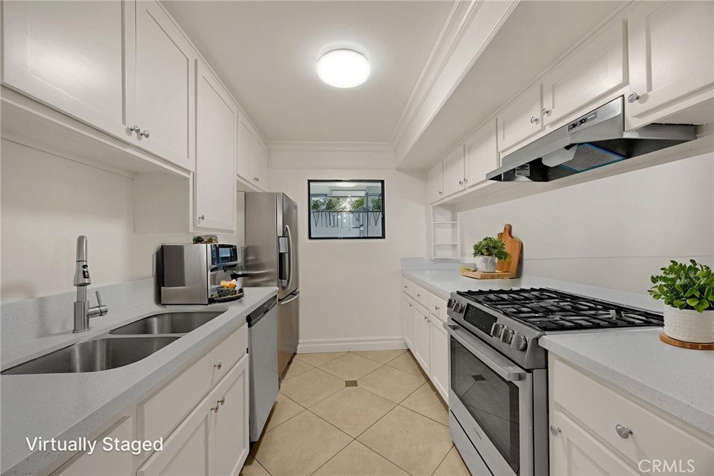 Beautiful ground level corner condominium located in the Cabrillo Park Community off of 17th and Tustin Ave. Move-In ready condo has 1 bedroom, 1-bathroom, neutral interior paint and natural light throughout. Smooth surface flooring throughout. Newer AC 2022. Open living room includes a cozy fireplace, crown molding, and overlooks the community pool. The light and bright kitchen includes new quartz counter tops, new sink, new faucet, new stove and hood range. Breakfast bar seating facing the living room adds to the charm of this cozy condo. Hallway is wide and includes a desk area and tons of storage. Oversized bathroom in hallway with bathtub and shower combo. Assigned covered parking space and storage cabinet. Community Amenities: Pool, Spa, Club House, Laundry, and Gym. Short walk to Mabury Park, and short drive to multiple restaurants, shopping, and entertainment. Easy access to the 5/55/22 freeways.