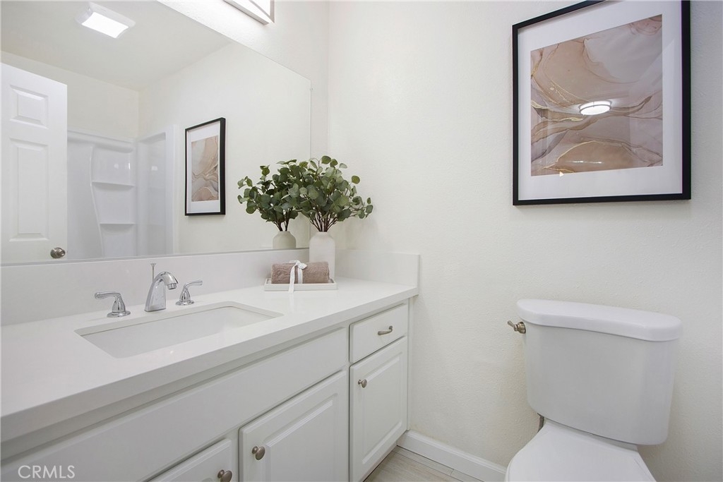 Welcome Home! Nestled in the meticulously maintained Cabrillo Park Townhomes, this 1-bedroom, 1-bathroom gem has been fully renovated inside and out. The new outdoor wood fence and gate ensure privacy for the open patio, while the spacious exterior storage area provides ample room for your belongings. Inside, you'll be captivated by the bright white kitchen, featuring gleaming new quartz countertops and new vinyl flooring throughout. Freshly painted walls and a cozy gas fireplace add to the charm. Abundant natural light floods every corner through new dual-pane windows. The hallway offers additional counter space and storage, complemented by a newer HVAC unit with a brand new Nest system, allowing you to control your home's temperature from anywhere. The renovated bathroom boasts a new shower/tub unit with rain shower fixtures, stylish floor tile, and a white quartz countertop. The bedroom is a serene retreat with a new ceiling fan and dual-pane windows that invite in natural light. This property is ideally located, just steps to the the pool, recreation area, and laundry facilities. Enjoy numerous HOA amenities, including covered water, trash, sewage, gas, pool, three spas, clubhouse, gym, and two laundry facilities, along with designated carport space and guest parking. Conveniently situated near freeways, shopping, restaurants, parks, and Disneyland, this home is also within the award-winning Tustin school district. Don't wait any longer—make this your home today!