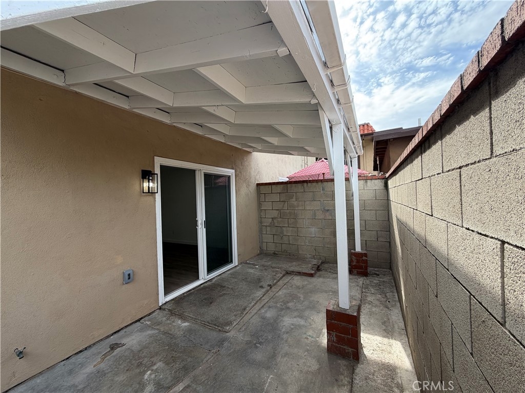 Charming, fully upgraded one-bedroom, one-bath lower-level unit with a private patio in the gated community of Bristol Place. This light and bright home has been completely renovated and freshly painted throughout. Upgrades include new laminate flooring and baseboards, dual-pane windows with blinds, glass sliding door, recessed lighting, a ceiling fan with remote, closet doors, and all new fixtures, outlets, and hardware. The updated kitchen features white shaker cabinets with soft-close doors and drawers, quartz countertops, a stainless-steel sink, gas range with hood and light, garbage disposal, and modern faucet—perfect for both everyday living and entertaining. The remodeled bathroom offers quartz countertops, a soaking tub, a new vanity with soft-close doors and drawers, updated shower fixtures, a single-flush toilet, new lighting, and a medicine cabinet. The unit includes one assigned carport space plus one additional unassigned parking space. Community amenities include a pool, laundry room, and outdoor cooking area with picnic tables. Conveniently located near shopping, public transportation, and easy freeway access.