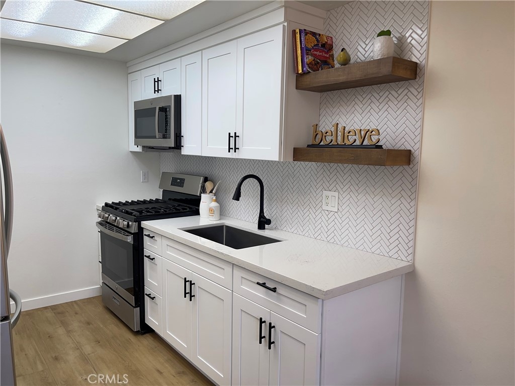 BACK ON MARKET - Don't miss out on this updated 1 bedroom / 1 bath condo with private patio. Spacious bedroom with large closet. New vinyl plank flooring, refrigerator and microwave. Newer kitchen and bathroom including cabinets and countertops. Newer stove, windows, window coverings and more. A MUST SEE. Easy access downstairs unit that is nestled in a private gated community. Community pool, covered patio and BBQ area - perfect for entertaining. Minutes away from South Coast Plaza mall, Starbucks, restaurants, parks, schools and freeways.
