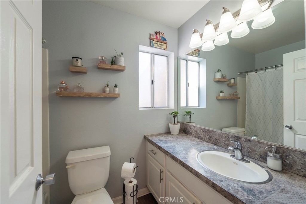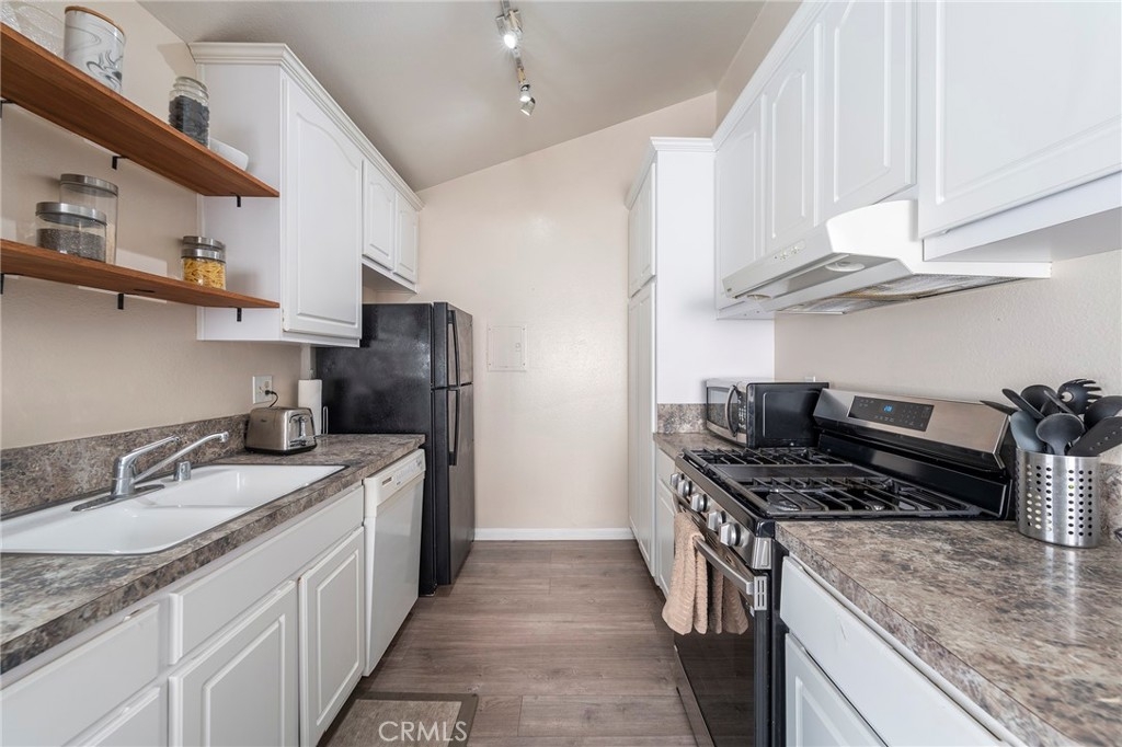 Welcome home to this luminous condominium nestled in the highly sought-after Cabrillo Park community. This is the perfect starter home located on the uppermost level with no neighbors above and is ideally situated toward the rear and interior of the complex, providing convenient access to parking and laundry facilities. The residence boasts two enclosed patios, perfect for those with furry companions, as well as spacious mirrored closet doors, vaulted ceilings, a newer kitchen stove, newly installed recessed lighting in the living area, and a fresh front door. The home is adorned with contemporary wood laminate flooring throughout. You'll relish the proximity to parks and shopping within easy walking distance. The community itself offers a splendid pool, a rejuvenating spa, and a fully-equipped gym. Notably, the HOA dues have just been increased to $374 to accommodate a brand new roofing project for the entire complex. Furthermore, the HOA covers essential utilities such as water, gas, and trash. Two parking spots are included: one carport parking space #480 and one open parking spot throughout the complex (with a parking permit sticker).