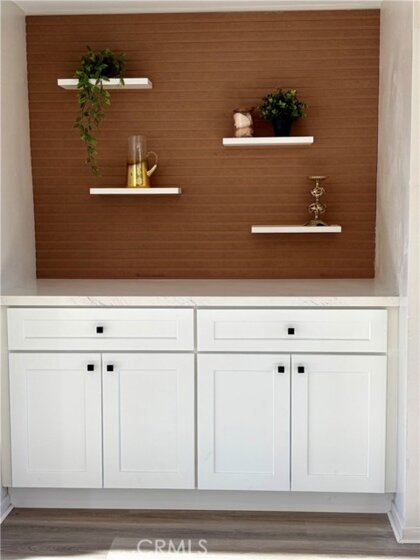 Presenting a fully remodeled 2-bedroom, 1-bath condominium located within the highly maintained and, gated Santiago Springs community. This residence features a modern kitchen equipped with upgraded countertops, contemporary cabinetry, recessed lighting, and ALL new stainless-steel appliances. The interior has been enhanced with new flooring throughout, as well as the added convenience of an in-unit washer and dryer. The bathroom has been upgraded with contemporary finishes. The living room is highlighted by a fireplace, providing a warm and inviting atmosphere.Community amenities include a pool, spa, and BBQ area, all supported by low HOA fees. Parking accommodations consist of an assigned garage space along with an additional parking pass. This property qualifies for a $20,000 grant, For additional information, please contact Richard Tellez at (714) 478-0749.