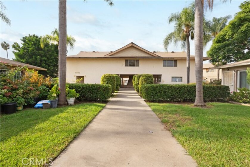 Welcome Home! Upon entering, you’re greeted by a spacious living room featuring elegant crown molding and classic tile flooring that flows seamlessly throughout the first level. Sliding glass doors lead to your private patio that's ideal for relaxing or entertaining. The kitchen offers plenty of character with its stylish tiled backsplash and open layout that connects beautifully to the outdoor space. A conveniently converted shower closet and a half bath on the main floor provide added functionality and comfort for guests. Upstairs, the primary bedroom has been thoughtfully divided into two separate rooms, offering extra privacy or flexible use as an office or nursery. The third bedroom is generously sized, and the upstairs bathroom provides ample storage. Enjoy access to a refreshing community pool, two dedicated parking spaces, and multiple on-site laundry facilities within the complex. Ideally located near freeways and shopping centers, this condo combines comfort, charm, and convenience in one inviting package.