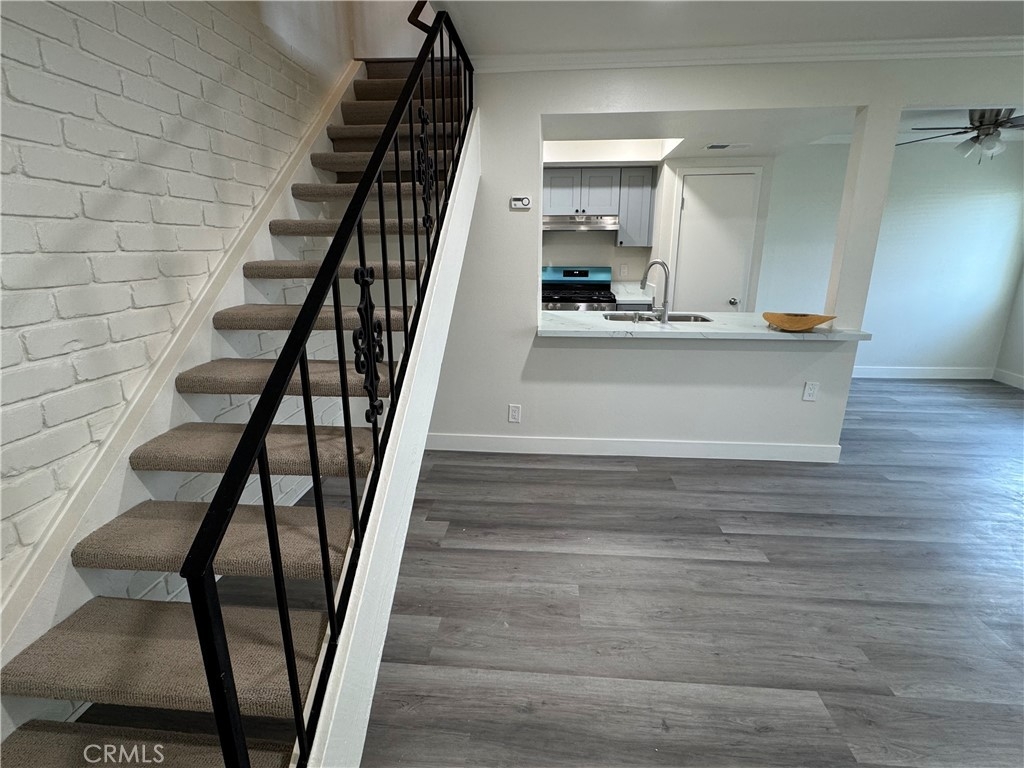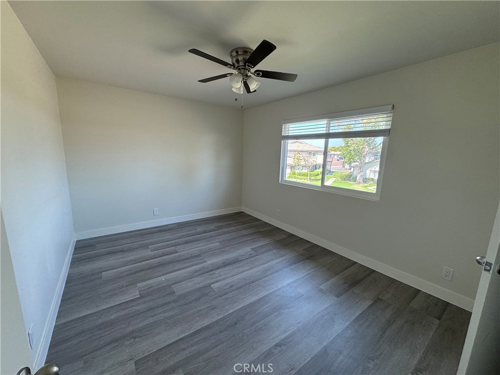 The beautiful townhouse is ready to move in! The house has two stories, two bedrooms, and one new bath. Everything is upgraded with everything new cabinet, countertop, stove,new vinyl floor and windows, new paint wall with texture ceiling thoughout. The master has a walk-in closet. Kitchen with two pantries, all fans are in 2 bedrooms and dining room. Living room includes greenbelt. One garage space ( shared 2 car garage) and one assigned parking space that's closed to the house for convenience. Community pool. HOA covers water and trash. Just minutes from the 5 and 55 freeways, shopping and restaurants. Great opportunity to have nobody above!