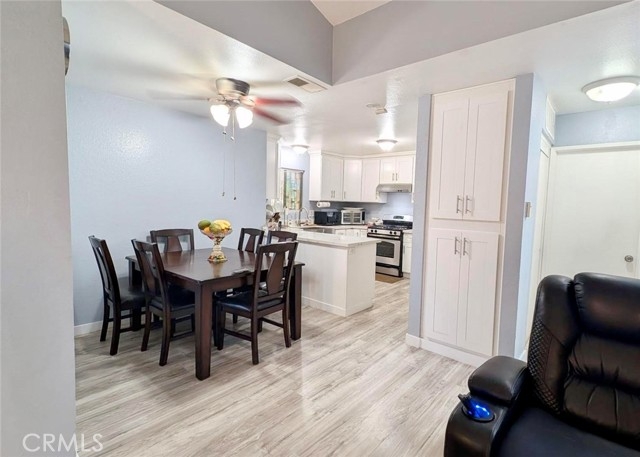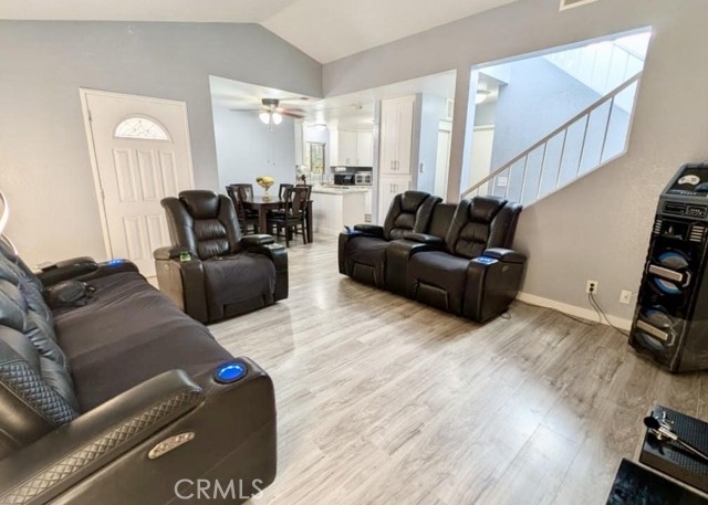 Welcome to your stunning Condominium move-in ready. This beautiful and cozy home features 3 Spacious Bedrooms & 1.5 Baths. The Living Room has an open space concept with Large Windows and Brand-New laminate flooring. Master Bedroom has plenty of Closet space and connects to Bath with a Large Vanity Countertop & Stand-Up Shower. As you make your way out from the Master's Bedroom, Offers a Large Private & Covered Balcony Room for Relaxation. The 1 Car Garage has Direct Access to the Newly Remodeled Kitchen, Quartz Countertops, Custom Cabinets & Pantry, Ceiling Fans with Lights Throughout, Beautifully Laid New Flooring, Baseboards, In Home Laundry Room. The Front Fenced and Covered L Shape Patio. This condominium is Minutes away from Schools, Fwys and shopping center and Markets...