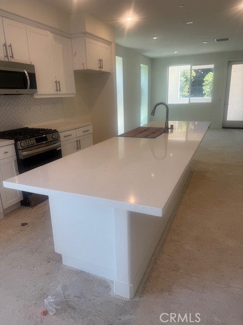 3 Bedrooms + Den/Office , 2 Baths + 2 Powder Baths, Upstairs Bonus Room/Flex Entertainment space with two doors to outside wrap around rooftop deck. 2 car garage side by side Approx. 2,483 sq. ft. Experience new-found live/work versatility in Plan 4. The first-floor office is OVERSIZED so convenient for work, play, enjoy with adjacent luxurious spacious powder bath. Upstairs, you’ll love the open floor plan design with extended gourmet kitchen island and under cabinetry for storage; separate study conveniently located off kitchen for maximum efficiency for you and family with gliding barn style doors, Floor to Ceiling Windows, formal dining area and abundance of included cabinetry, oversized baseboards, recessed lighting. HUGE walk-in pantry for all your kitchen needs. Covered second-floor deck to enjoy outside. This home is spacious with high ceilings and enormous windows showcasing all bedrooms on the same level of living with side by side laundry. Unique to this plan only enormous Flex room/Bonus room with roof deck to relax and unwind under the SoCal skies. This is an end unit located privately in the back of the community and with mature trees and private front door entrance. Includes white cabinetry with upgraded backsplash, and vinyl plank flooring and upgraded carpeting throughout. Home has GAS appliances