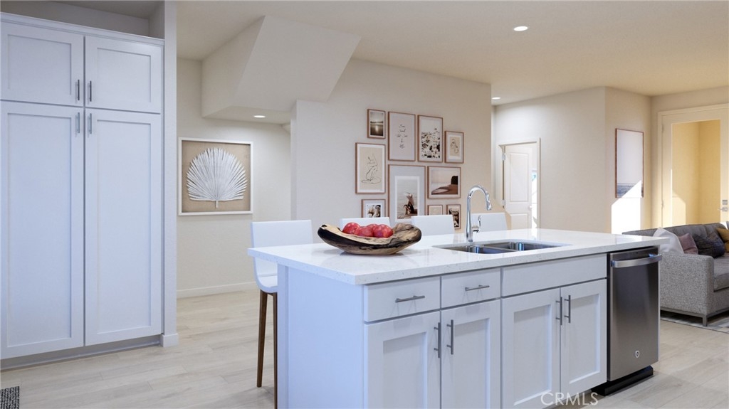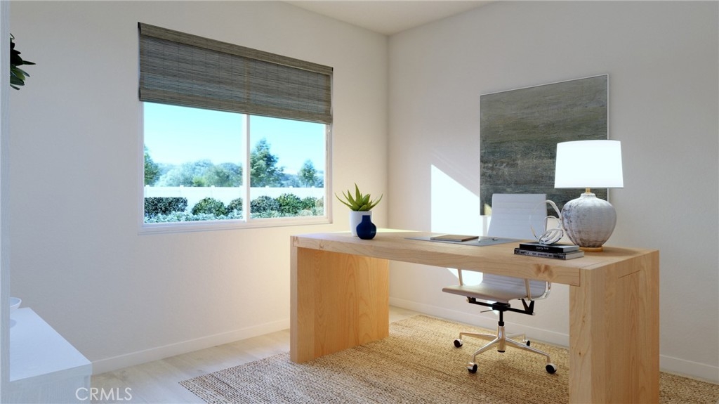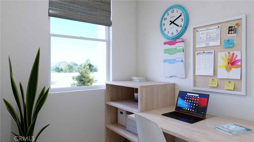 Experience newfound live/work versatility in Plan 4. The first-floor office is OVERSIZED so convenient for work, play, enjoy. Upstairs, you’ll love the open floor plan design with extended oversized gourmet kitchen island; separate study conveniently located off kitchen for maximum efficiency for you and family. HUGE walk-in pantry for all your kitchen needs. Tech Room. Covered second-floor deck. Unique to this plan only enormous Flex room/Bonus room with roof deck to relax and unwind under the SoCal skies. Home is an END unit with oversized windows with skyline views! Includes white cabinets with upgraded designer Grey Herringbone backsplash in kitchen. Buyer can select flooring.