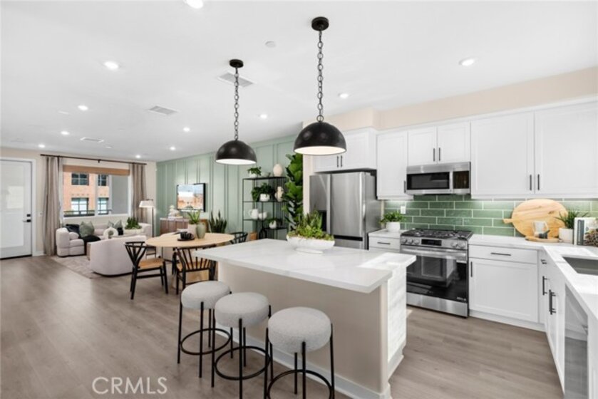 MODEL HOME! Professionally upgraded with over $80k in upgrades/finishes and impeccably decorated - A MUST SEE! Discover innovative design mixed with incredible comfort in this Plan 2 END UNIT, MODEL HOME! Every aspect of your life will be easier with a first-floor office and powder bathroom, 2 car attached garage, open floorplan design and so much more! The gourmet kitchen includes a walk-in pantry, office work station off kitchen, kitchen island and impressive kitchen details. This home opens to a covered California deck to enjoy the outdoors. Venture upstairs to find the primary suite with luxurious bath, across the hall are the bedrooms 2 & 3. Make your way to the top floor and WOW yourself with the wonderful flex space and large rooftop deck area! Light and bright with plenty of window treatments for your privacy as well - this home is Model Home Perfection in the heart of Orange County! Built ready for immediate occupancy. Home is zoned in a special LIVE WORK area - CALL for more information