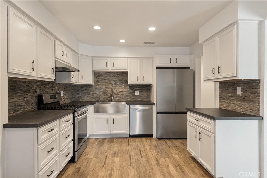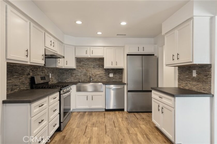 Say Hello to your new home! This beautifully updated end-unit, single story townhouse offers 3 bedrooms, 2 bathrooms, and the comfort of no one above or below. Filled with natural light, the home features a freshly painted interior, newly remodeled bathrooms, and stylish finishes throughout. The updated kitchen is both functional and inviting, complete with Dekton stone fossil countertops, Vandenberg Pearl cabinetry, a stainless steel apron-front farm sink, and all appliances included in the sale. The spacious dining area flows into a warm and welcoming sunken living room with a cozy wood or gas-burning fireplace, recessed lighting, and rustic wood luxury vinyl plank flooring. Step outside to a large covered patio that is perfect for relaxing or entertaining, plus a charming front garden space ready for your personal touch. Additional highlights include the included washer and dryer, built-in storage, upgraded forced air heating, Mr. Cool ductless air conditioning, a detached one-car private garage with extra storage, and one permitted parking space. Residents also enjoy beautifully maintained park-like grounds, a community pool, and clubhouse amenities. Conveniently located near schools, parks, shopping, dining, and major freeway access, this home offers both comfort and everyday convenience. Don’t miss the opportunity to make this awesome townhouse your new home!