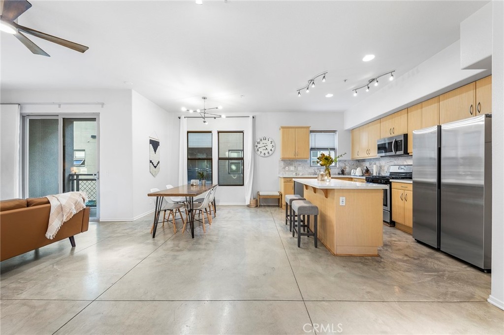 THIS IS THE LOFT YOU HAVE BEEN DREAMING OF!!! The Artist Walk Lofts are ideal for your living/office needs in Historic Downtown Santa Ana. Welcome to this Trendy home packed with High Quality Upgrades within walking distance to the most desirable California Top 10 High School - Orange County School of Arts. Steps through the front door and enjoy all this outstanding home has to offer. Soaring Ceilings in the main floor. Enormous Dual Pane Windows that Offer Lots of Natural Light, Polished Concrete Flooring, Custom roller Blinds, Exposed Duct Work, Designer Industrial-Style Fixtures & Accents, Recessed Lighting, Ceiling Fans, Newer Interior Paint, It Includes a Large Downstairs Studio or Living Room and Oversized Remodeled Bathroom, Plus Direct Access to Very Rare TWO-CAR "Finished" Garage with Storage Spaces. Upstairs You'll Find Open Concept Living Areas that Includes Living Room, Dining Room, The Remodeled Gourmet Kitchen with Island Boasts Quartz Countertops, Newly Stainless Appliances (Dish Washer, Stove, Microwave), Stainless Sink, and Newly water heater. Upgraded Full Bathroom with Quartz Countertops, newly bathtub and Dual Sinks. Open Bedroom Niches which can be Fully Enclosed. Sliding Glass Door that Opens to a Lovely Balcony. Walking Distance to California TOP 10 High School OCSA -Orange Country School of the Arts. Enjoy Nationally Recognized Restaurants & Museums & More! SCHOOL - WORK - LIVE - PLAY in DTSA!