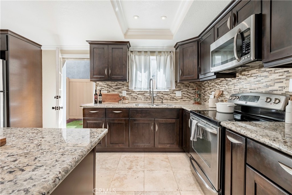 Step into your impeccably updated two-story condo offering 2 bedrooms, 1.5 bathrooms, and approximately 875 square feet of well-designed living space. This residence combines modern finishes with a highly convenient Orange County location. Inside, you’ll find updated wood flooring, central A/C, recessed lighting, and plenty of windows which enhance natural lighting bringing in the bright and welcoming environment. The remodeled kitchen features contemporary appliances such as Refrigerator, Microwave, Oven Range, and granite stone countertop, custom backsplash, and Large Kitchen Island with additional storage perfect for entertainment and everyday living. An in-unit laundry area adds bonus and rare convenience, while private outdoor spaces— including front enclosed patio, Rear Backyard Patio, as well as balcony — provides plenty of a quiet relaxation and enjoyment. The home also includes secured underground gated parking, offering both safety and ease of access. Positioned in the heart of Santa Ana, the property is surrounded by a wide range of schools, including the nearby Orange County School of the Arts, as well as Santiago Elementary and Willard Intermediate. Your low association includes MAJOR Bonus of water, sewer, and trash utilities as well upkeep of the grounds! Commuting is simple with close access to the 5, 22, and 57 freeways, connecting you to all of Orange County and beyond. Enjoy nearby attractions such as the Discovery Cube, Bowers Museum, and the vibrant Downtown Santa Ana scene. Call today for your private tour and enjoy your new move-in ready home!