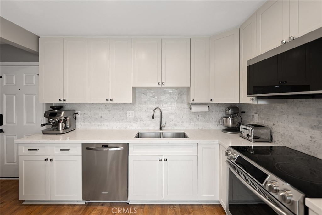 Look no further COME SEE this must see home where pride of ownership will show! This stunning 2-story home has been meticulously maintained and upgraded from top to bottom. The moment you enter the home you will be greeted with high ceilings, marble fire place and beautiful living space to enjoy with your friends and family. As you enter the home you will notice all the beautiful features this home has, starting with the fully upgraded kitchen. Kitchen offers nice quartz counter tops with a stunning waterfall peninsula, marble backsplash, high-end Samsung electrical range and dishwasher. Endless upgrades include laminate flooring, newly remodeled main bathroom with a deep soaking tub, new HVAC system. Not only has the inside been completely remodeled but the exterior of the building as well. With brand new roof recently installed, including new stucco and siding along with fresh paint. This home is PERFECT for first time buyers looking to stay in Orange County! This gated community offers great amenities, including pool & spa, clubhouse, bbq. Conveniently located just blocks away from South Coast Plaza, near shopping centers, fine dinning restaurants and 405 fwy, and highly sought after Greenville fundamental elementary and Segerstrom High School! DO NOT miss out on this amazing opportunity!!