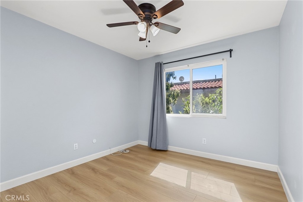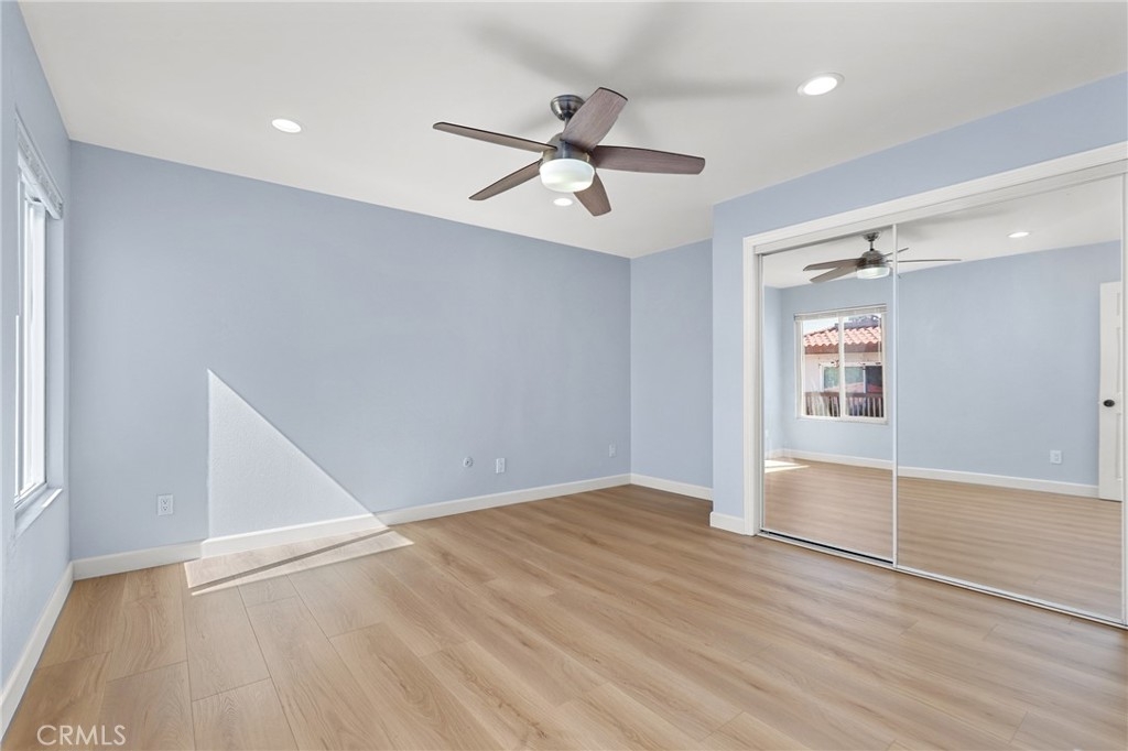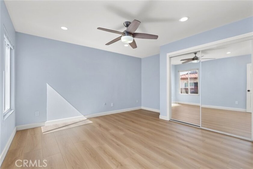 Welcome to this immaculate upper-level condo in the desirable Woodside Village neighborhood of Santa Ana. Thoughtfully updated and move-in ready, this light-filled home features wide plank luxury vinyl flooring throughout, fresh interior paint, and recessed lighting that enhances the modern, airy feel. The inviting living room opens to a private balcony—perfect for morning coffee or relaxing evenings. The well-designed floor plan offers comfortable living with a seamless flow between the living, dining, and kitchen areas, ideal for both everyday living and entertaining. Bathroom with upgraded, remodeled shower. Located within a gated community, Woodside Village offers resort-style amenities including sparkling pools, a clubhouse, and beautifully maintained lush green spaces, creating a peaceful and welcoming environment. Conveniently situated near shopping, dining, and major freeways, this home combines comfort, style, and accessibility in one exceptional opportunity.