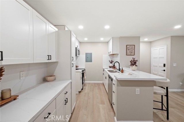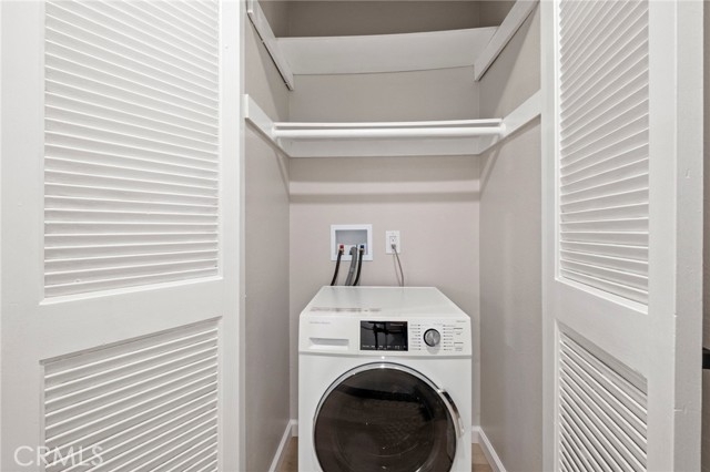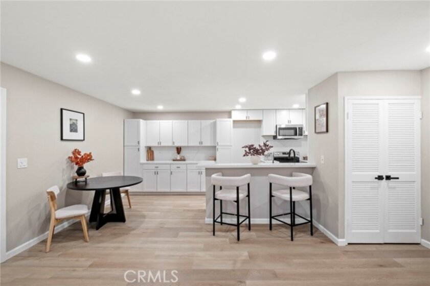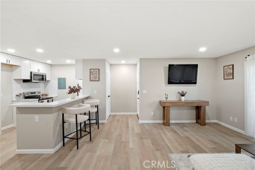 COMPLETELY RENOVATED 2 bedroom, 2 bathroom condo that offers 870 square feet of living space and is completely move-in ready. The kitchen has been updated with brand new cabinetry, countertops, and stainless steel appliances. Both bathrooms have been remodeled with modern finishes and brand new tub/shower enclosures. Throughout the home you will find waterproof luxury vinyl plank flooring along with dual pane windows and sliding doors that provide efficiency and comfort. A WiFi smart lock add convenience and peace of mind. Roof mounted A/C condenser has been replaced with a new unit that comes with a 10-year limited warranty. This condo includes an in-unit washer and dryer. The community does not allow for the addition of a dryer vent, but new ventless all-in-one technology makes this possible and sets this home apart from the rest. The gated community includes three swimming pools and well-kept grounds. Monthly HOA dues of $426 cover water, trash, and sewer. The condo comes with a covered carport that includes storage, and there is plenty of additional parking for residents and guests. The neighborhood is in the midst of a community-wide revitalization. Over the next one to two years, the exterior of all buildings and common areas will be completely refreshed. Building 1 near the entry gate has already been completed and shows the high quality of the improvements that are planned for the entire community. The South Coast Plaza Village redevelopment is moving forward nearby. This project will bring new retail, dining, and community spaces, creating long-term value and future equity for homeowners. Located minutes from South Coast Plaza, Irvine, dining, and freeway access, this condo combines modern upgrades, strong community amenities, and exciting future growth.