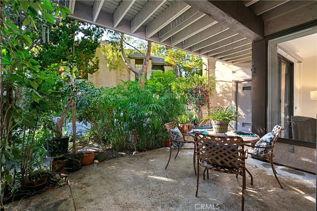 Welcome to this contemporary ground level condo in the gated-community of Woodlake. Great open flowing floor plan, centered around a spacious living room with high ceilings & an inviting fireplace. Large glass sliding doors open up to your large, private back patio with views & sounds of running streams & nature right outside... Ideal for the indoor outdoor living enthusiasts. Features include stylish tile floors throughout living area, designer style paint, smooth ceilings, and central a/c and heat. Large, upgraded kitchen, with eating area, sleek quartz counters, white cabinetry and 2nd patio. Spacious master bedroom with ample closet space, attached en suite bathroom and access to rear patio with private laundry closet. Both bathrooms have been upgraded with quartz counters and new sinks. Woodlake is an Exquisitely Landscaped Zen and Nature inspired gated Community with sounds of Running Streams and Waterfalls, an abundance of Ponds, Flowers, Plants and Trees and Beautiful Views throughout, yet still located in the Trendy, Cosmopolitan area of South Coast Metro. Down the street from some of OC's Finest Shops, Restaurants, Entertainment, South Coast Plaza, OC's Segerstroms Performing Arts Center, SoCo, & Metro Point.