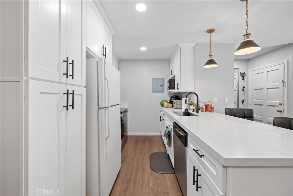 COMPLETELY RENOVATED, LOWER END UNIT, 2 bedroom 2 bathroom condo that offers 878 square feet of living space. The kitchen has been completely updated with brand new cabinetry, countertops and stainless appliances. Both bathroom have been remodeled with modern finishes and brand new tub/shower enclosures. Throughout the home you will find vinyl plank flooring. This gated community includes three swimming pools and well kept grounds. There is a covered carport with extra storage and plenty of addition parking. Minutes from south coast plaza, dining, close freeway access and so much more!! HOA covers water, trash, and sewer
