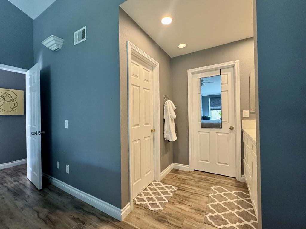 Beautifully Remodeled Home in Prime Community Location. Ideally situated in one of the most desirable areas of the community, offering 5 parking spaces, steps to the community pool and spa, additional guest parking, and expansive greenbelt -- perfect for resort-style living. The open-concept floor plan features four bedrooms, or three bedrooms plus an office, 2.5 bathrooms, a nice kitchen with ample cabinet space, including a lazy Susan, and a spacious two-car garage with direct access. Enjoy outdoor living with two large patios, ideal for relaxing or entertaining. The well-maintained Shady Hollow gated community features HOA-covered amenities, including a community pool and spa, gated access, surveillance system, roof maintenance, exterior painting, wood maintenance with termite control, community lighting, landscaping, and tree trimming. Welcome Home! The property is situated on leased land that expires in 2049, with a monthly lease payment of $1,808.67. HOA's dues are $705.17 per month.