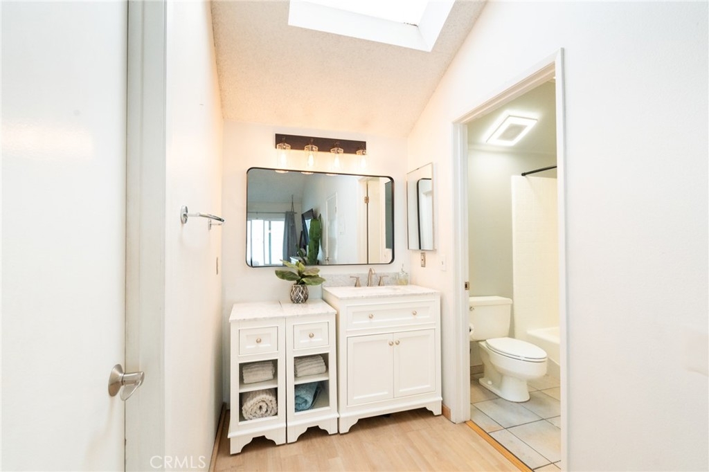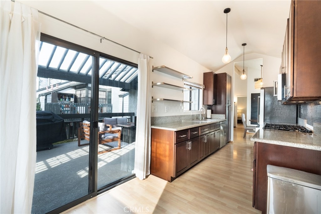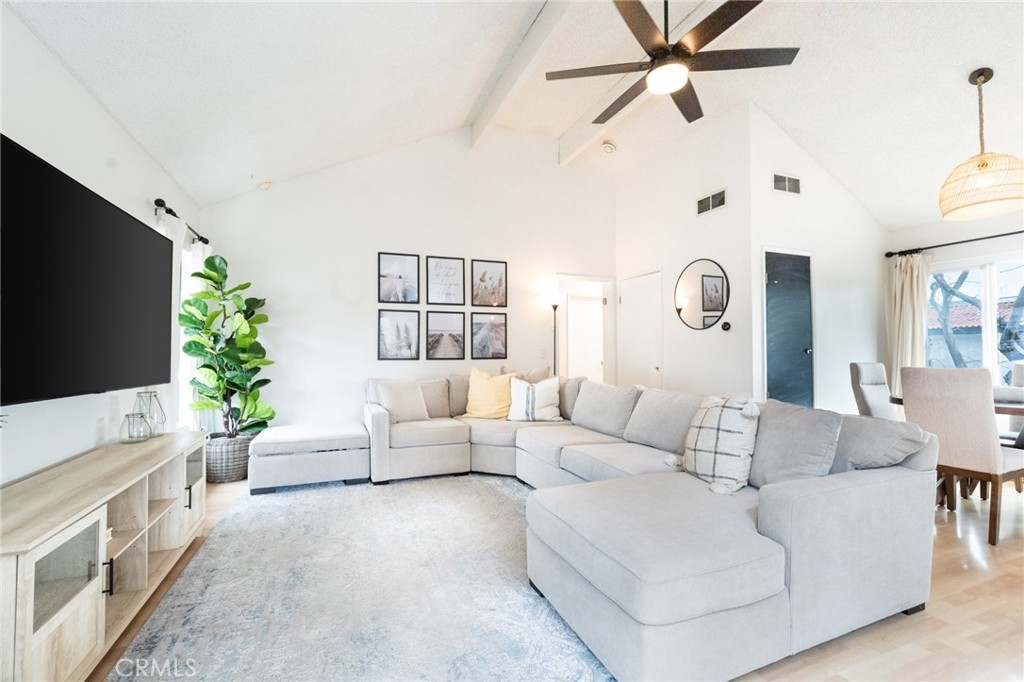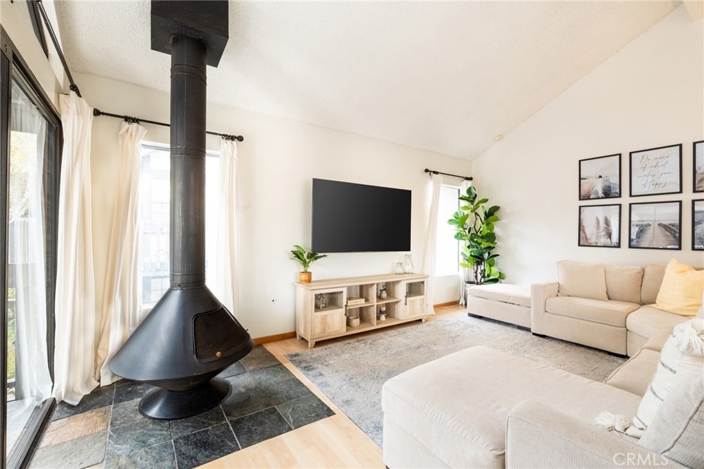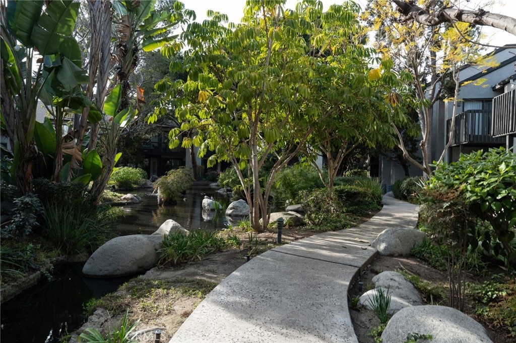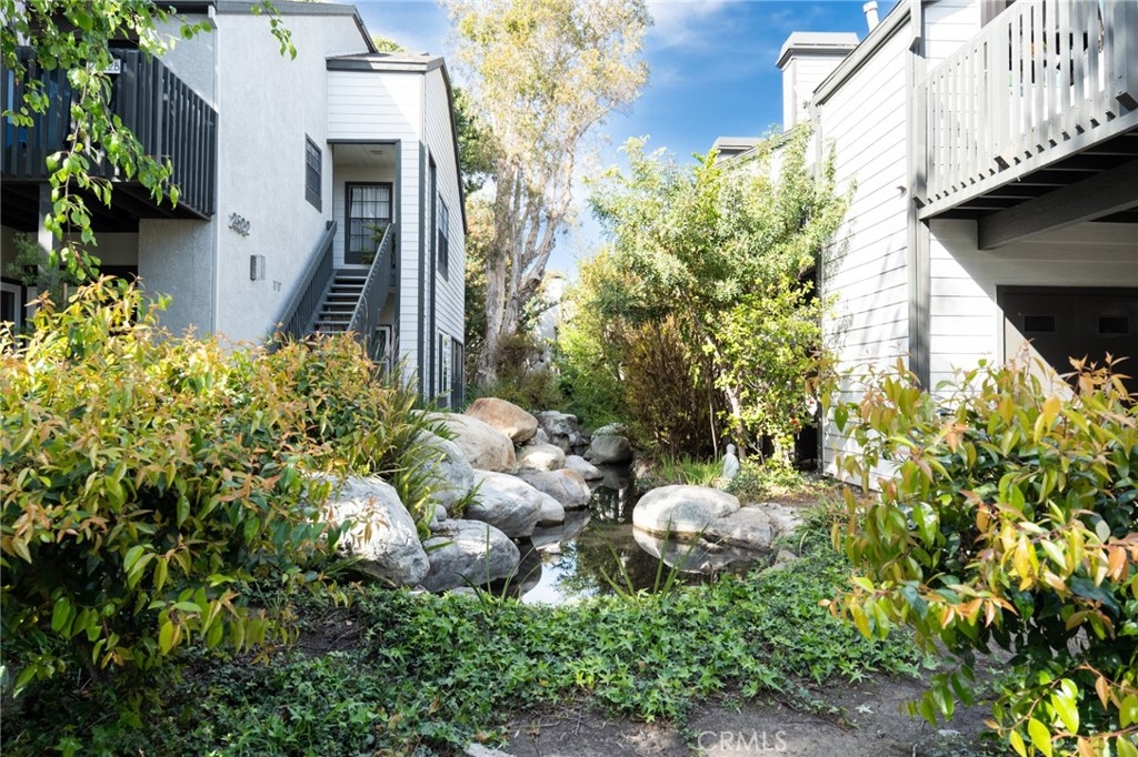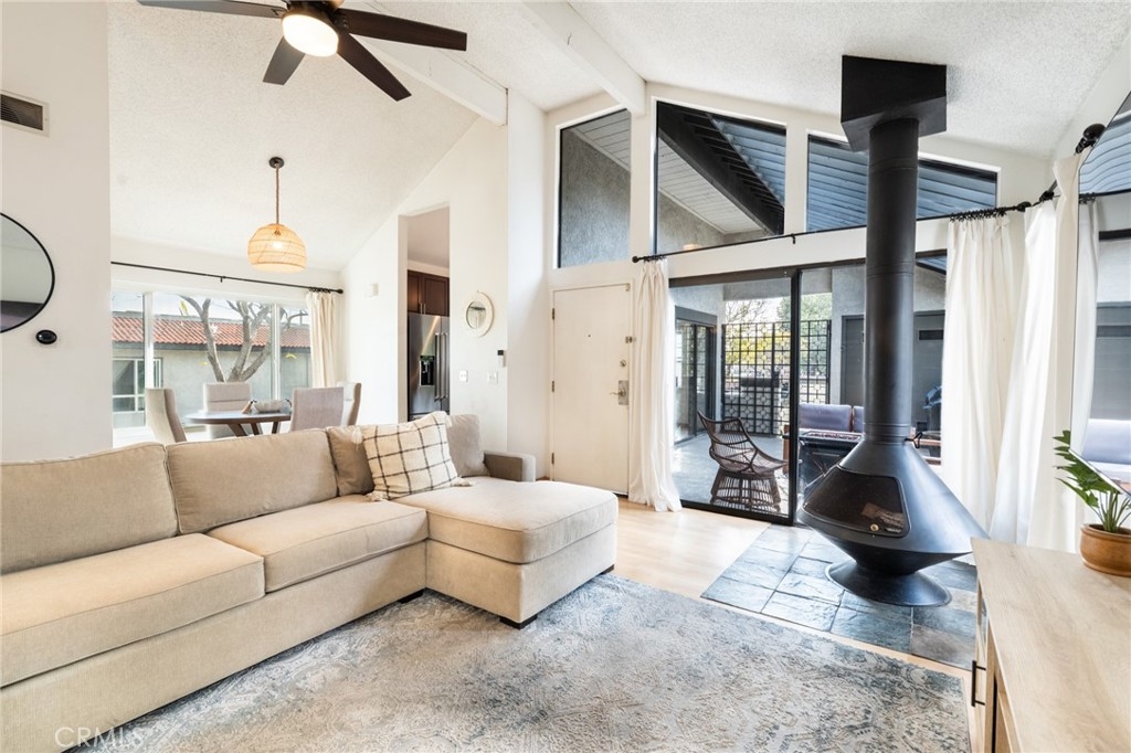 Wow! Value Range Price $448,000-$498,000. Must see this super cute end unit condo in the popular gated community of Woodlake. Dramatic high ceiling in living room and cute free standing fireplace. Lots of windows to enjoy the sunlight and wonderful floorplan. Premium location in rear of community with rare duplex style setting. Just one attached neighbor with no one above, below or to rear. Gorgeous remodeled kitchen with vaulted ceiling, stainless steel appliances including wonderful gas range and built in microwave. Kitchen cabinets feature pull out organizers. There is also an awesome space off kitchen perfect for home office. The bedroom has high vaulted ceiling, extra large walk in closet. Bathroom has remodeled vanity and there is also a skylight. Super convenient to parking directly below condo. Large bedroom with high cathedral ceiling. Spacious and welcoming front courtyard patio-perfect for entertaining and relaxing. The patio also comes with nice gate, patio cover and overlooks nice waterscape below. Other great features include full size washer/dryer in closet, ceiling fans, central air conditioning, dining area. Woodlake is the perfect blend of serenity and convenience! The peaceful surroundings with waterscapes and trees offer a great retreat from the hustle and bustle, while still being close to all the excitement and amenities like the 405/55 freeways, South Coast Plaza, and Segerstrom Center for the Arts. Plus, being near beaches and attractions adds a lot of variety to this amazing lifestyle. What a great place to live with the best of both worlds! Water/Trash are included in association dues.