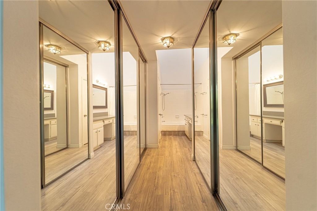 Welcome to your modern oasis in the highly sought-after, nature-inspired Woodlake community! Located at the top level. Step into a grand foyer with soaring vaulted ceilings that open to a spacious living and dining area designed with an airy open-concept flow. A sleek contemporary fireplace adds warmth and style, creating the perfect gathering space. From the living room, step out to a large private back patio overlooking tranquil lakes, mature trees, and a gently running stream — the ideal setting for your morning coffee or a peaceful evening retreat. The kitchen has quartz countertops, with appliances, and access to a second front patio, perfect for outdoor dining or entertaining. The primary suite offers a true retreat with two expansive closets and a spa-inspired ensuite bathroom featuring a dual-sink vanity. Enjoy private patio access directly from the bedroom. A spacious secondary bedroom includes ample closet space and access to the front patio, offering comfort and flexibility for guests or a home office. Additional highlights include Central air and heat, private laundry closet on your patio, two designated covered parking spots. Woodlake is a serene, gated community beautifully landscaped with lush gardens, ponds, and soothing water features — all within the vibrant South Coast Metro area. Enjoy close proximity to South Coast Plaza, Segerstrom Center for the Arts, So Co, Metro Pointe, and some of Orange County’s best dining and entertainment.