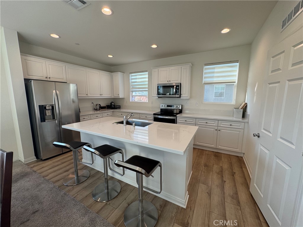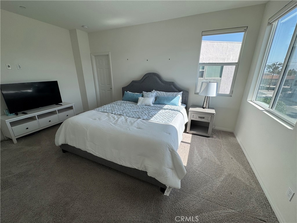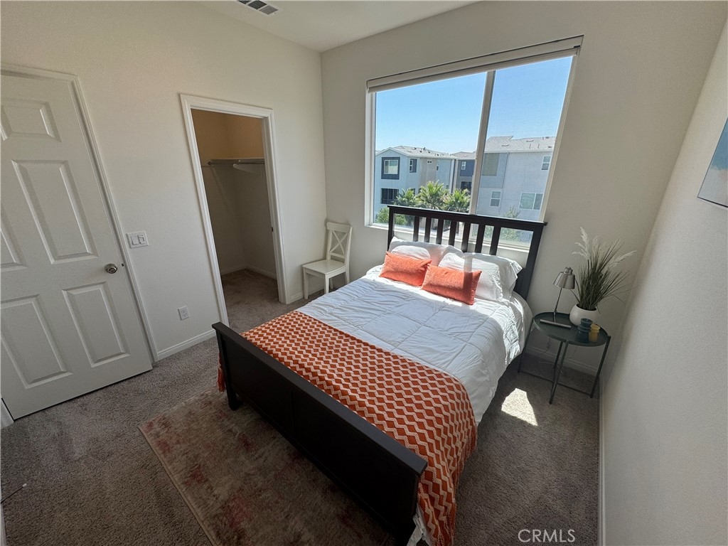 This property is a modern, three-story condo built in 2022, located in the Lacy Crossing community in Santa Ana. It's a spacious and thoughtfully designed home, great as a family home or rental investment. It combines comfort, convenience, and value in a desirable neighborhood. Its size is approximately 2139sqft across three levels, 4 bedrooms, and 3.5 bathrooms with Paid-off solar panels-reducing electricity expenses and enhancing sustainability. The 1st floor has a private suite with bedroom, full bath, and walk-in closet, ideal for a guest or an office. The second floor has an open-plan great room offering abundant natural light and a kitchen, including a walk-in pantry, offering extra storage space for food, small appliances. The third floor features three bedrooms and two full bathrooms