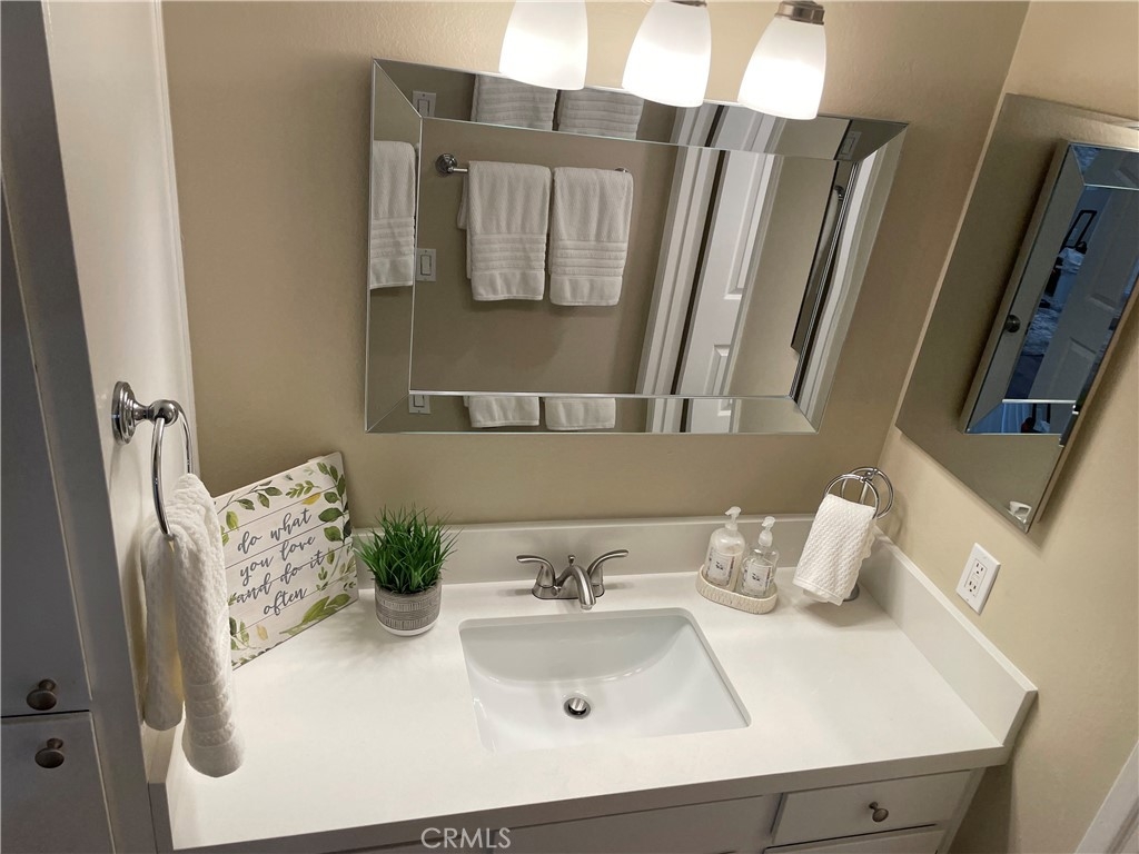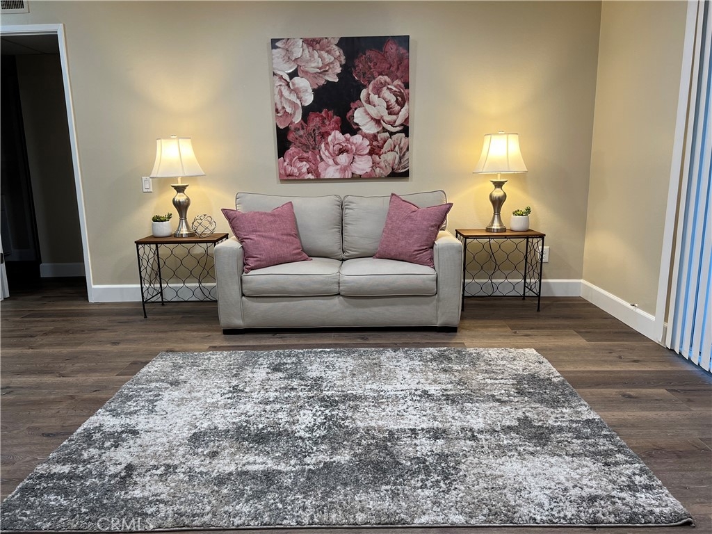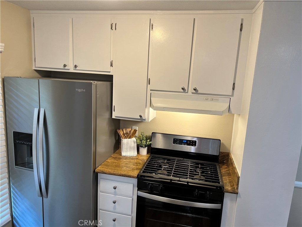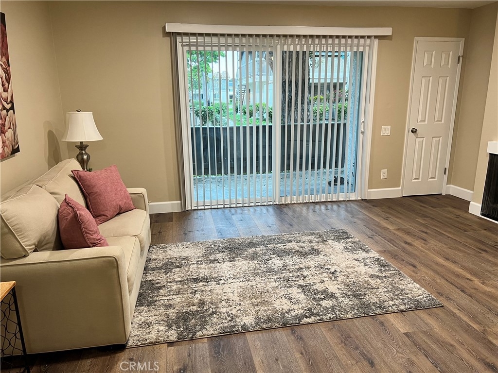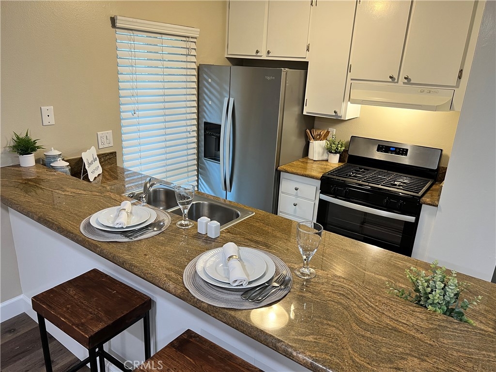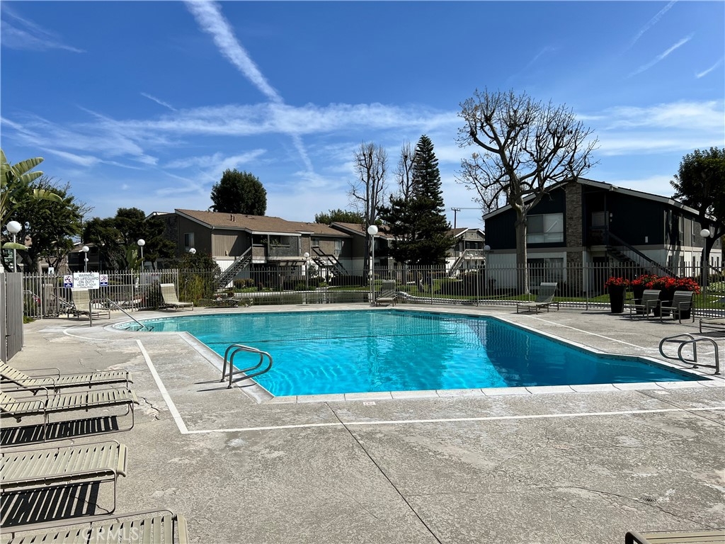 LOVELY SINGLE STORY CONDO! Highly Upgraded with AC/Heating- 3 yrs old, New Water Proof Flooring throughout, New Baseboards, New Recessed Lighting on Dimmer Switches in the Living Room and Bedroom, New Ceiling Fan, Popcorn Ceilings removed, Fresh Paint throughout and a Cozy Gas Fireplace on switch. Newer Dual Pane Windows and Sliding Glass Door, Upgraded Stainless Steel Refrigerator with Water Dispenser, New Stainless Steel Stove, New Stainless Dishwasher and New Water Lines. Bathroom area, New Storage Cabinet in bathroom, New Quartz Counter Top, New Sink, New Mirror, and New Water Line . Nice sized Patio for BBQ's or leisure time with friends. This Condo is clean and ready for immediate occupancy. The HOA is currently $329 which covers, Gas, Water, Trash and 1 Carport (#201) with Storage and One Guest Pass. There is a Pool, Jacuzzi, and Tennis courts, and Washer and Dryer facilities on premises. Conveniently located to the 405 Fwy, Shopping and Restaurants. FHA financing approved community!