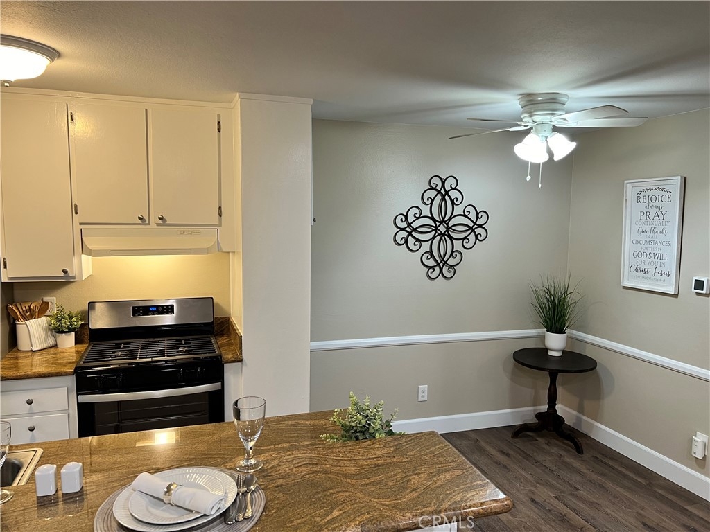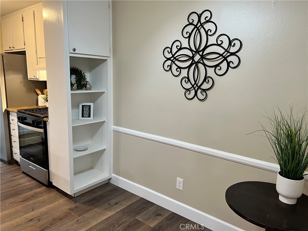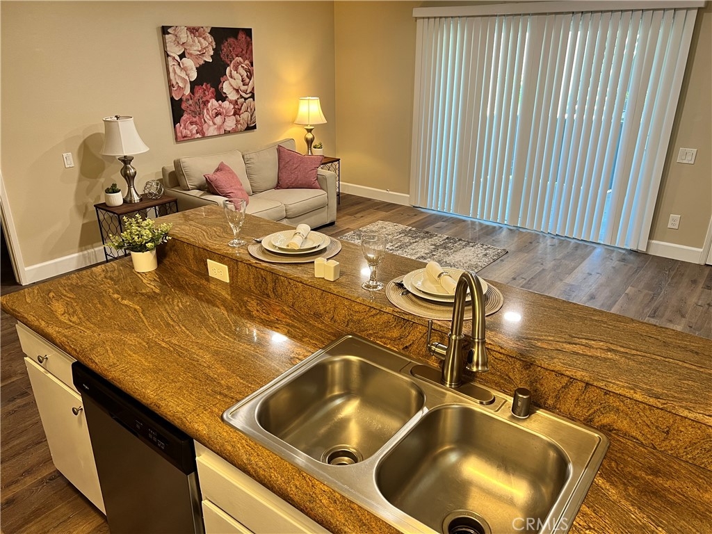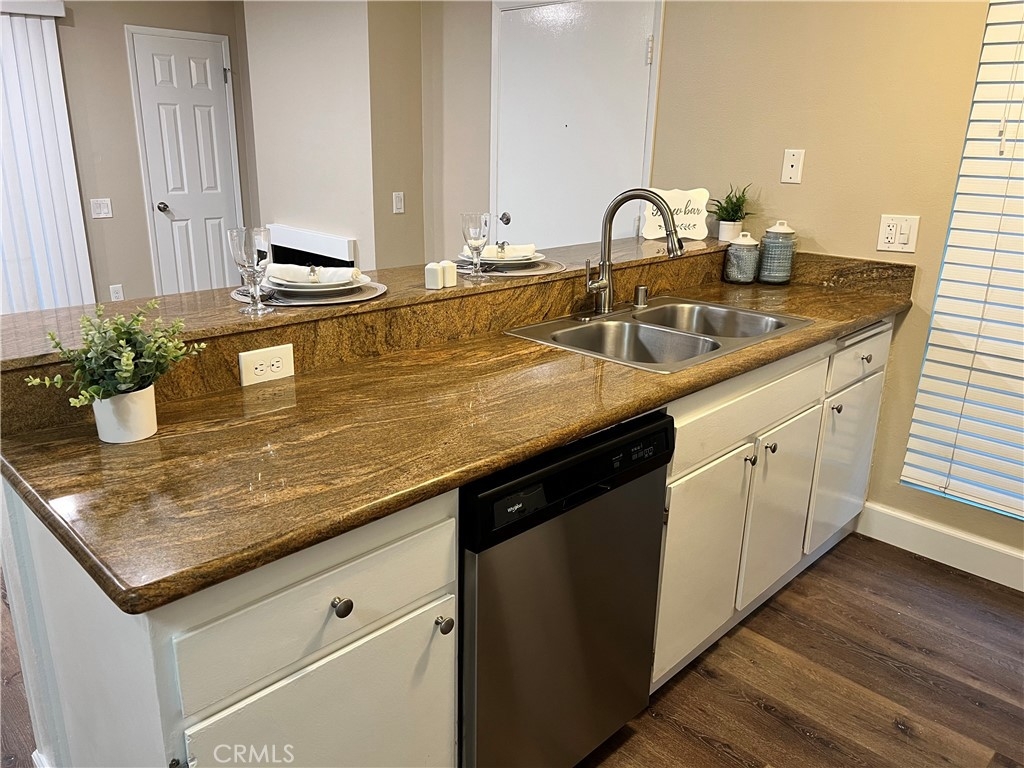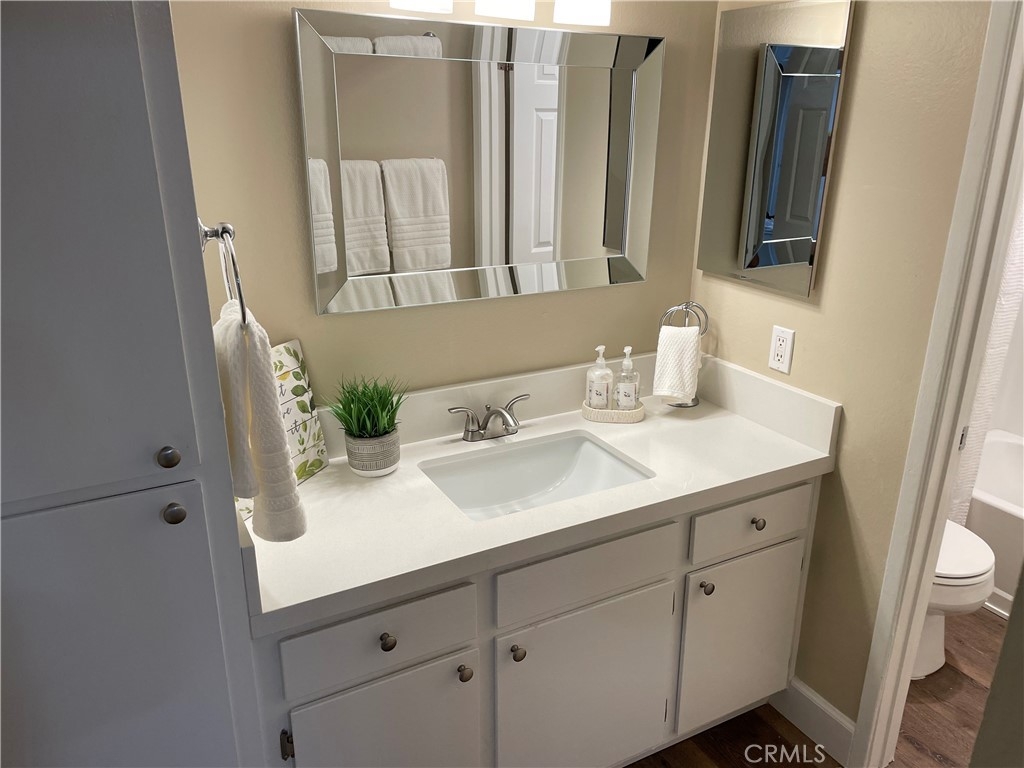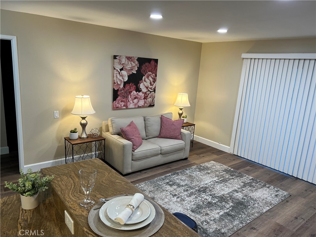 LOVELY SINGLE STORY CONDO! Highly Upgraded with AC/Heating- 3 yrs old, New Water Proof Flooring throughout, New Baseboards, New Recessed Lighting on Dimmer Switches in the Living Room and Bedroom, New Ceiling Fan, Popcorn Ceilings removed, Fresh Paint throughout and a Cozy Gas Fireplace on switch. Newer Dual Pane Windows and Sliding Glass Door, Upgraded Stainless Steel Refrigerator with Water Dispenser, New Stainless Steel Stove, New Stainless Dishwasher and New Water Lines. Bathroom area, New Storage Cabinet in bathroom, New Quartz Counter Top, New Sink, New Mirror, and New Water Line . Nice sized Patio for BBQ's or leisure time with friends. This Condo is clean and ready for immediate occupancy. The HOA is currently $329 which covers, Gas, Water, Trash and 1 Carport (#201) with Storage and One Guest Pass. There is a Pool, Jacuzzi, and Tennis courts, and Washer and Dryer facilities on premises. Conveniently located to the 405 Fwy, Shopping and Restaurants. FHA financing approved community!