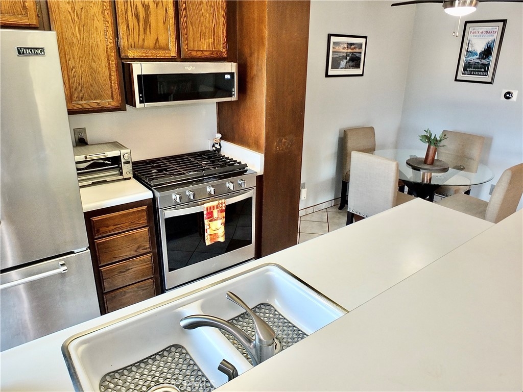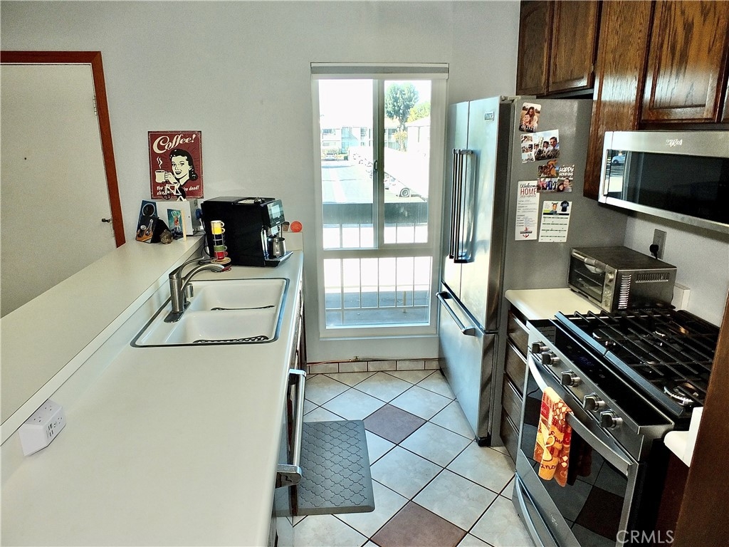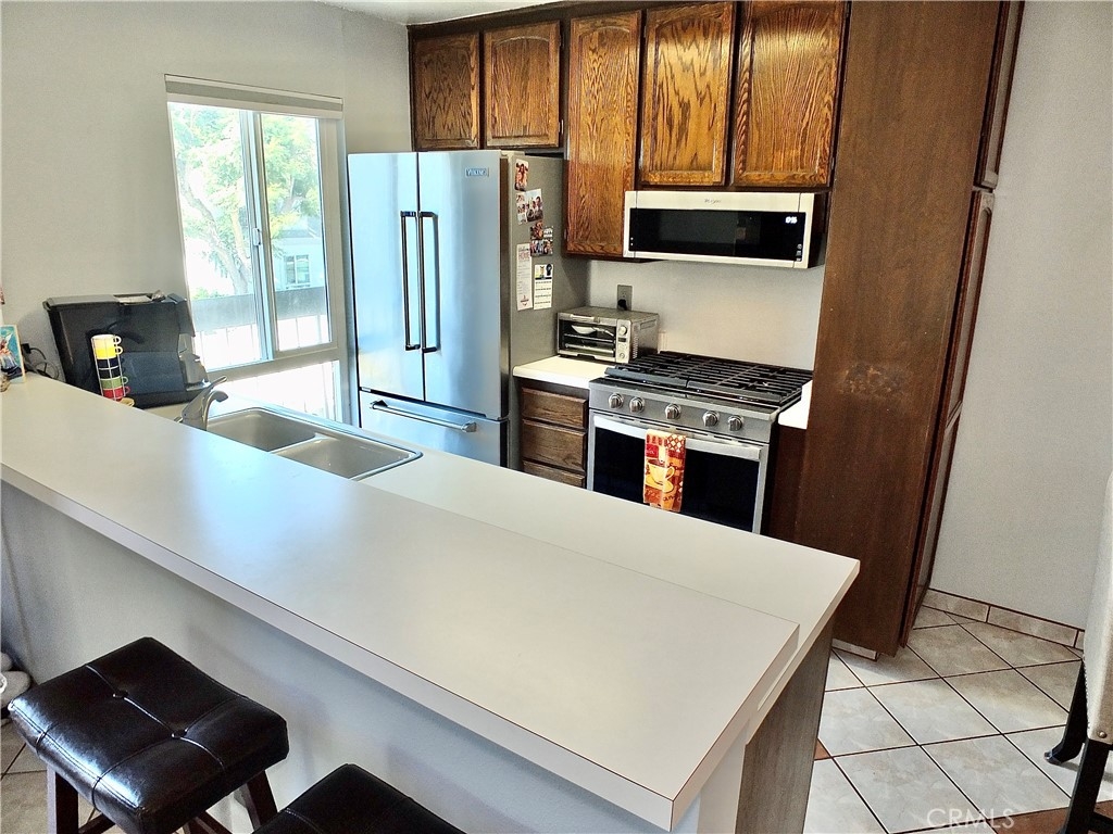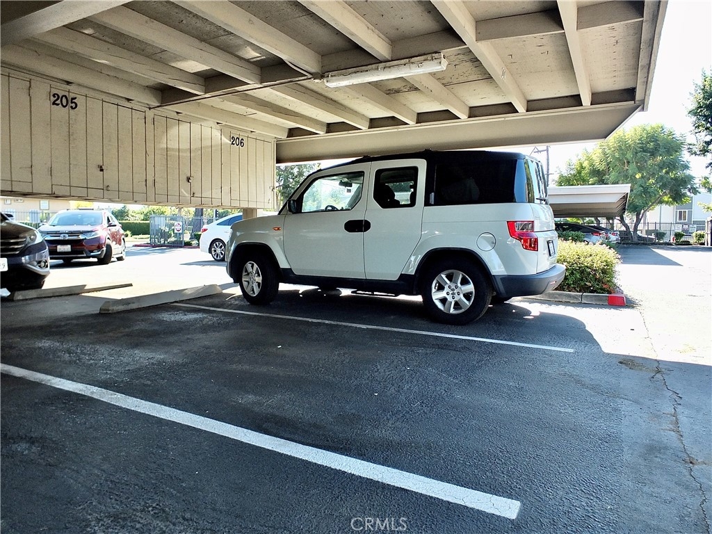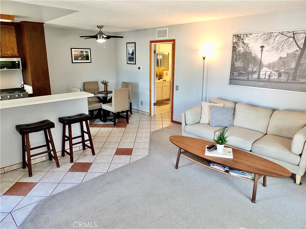 Spacious upper, end unit, with lots of natural light. Unit H features an open concept, living room, kitchen and dining room space as well as a private balcony to enjoy some outdoor space. One bedroom and one full bathroom with separate sink and dressing area. It has been upgraded with dual paned windows and patio slider, plus stainless steel appliances, and central heat and air conditioning. The HOA covers, water, trash and gas as well as exterior maintenance and resort style amenities such as tennis courts, a pool, 2 spas, recreation room, a large water feature and lots of greenspace. One assigned carport parking spot #206 with overhead storage, and one unassigned parking spot! All of this is conveniently located in the South Coast Metro area with access to shopping, dining, entertainment, parks, 405 & 55 freeways.