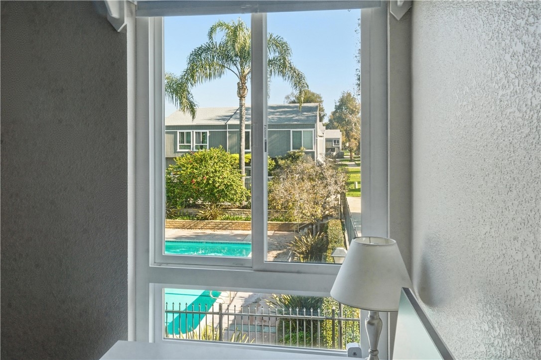 NEW ROOF (approximately 2 months old)! Turnkey townhome located in the highly desirable Village Walk Townhome community featuring 2 bedrooms and 1.5 bathrooms with vaulted ceilings and abundant natural light. The bright, open floor plan offers quartz countertops with a tile backsplash, a chandelier over the kitchen sink, step-in pantry, recessed lighting, and under-cabinet motion-sensor lighting. The living area is enhanced with wainscoting, crown molding throughout, new baseboards, tile flooring on the main level, and carpeted stairs and bedrooms. The upstairs bathroom features tile flooring, and the primary bedroom includes a walk-in closet with mirrored door. Additional highlights include solid core interior doors, mirrored bypass closet doors, newer windows and sliding glass door (approximately 2 years old), real wood decking freshly painted as a custom upgrade, ceiling fan in dining area and attic access. The home also features a Ring doorbell (to remain), security door, Google Nest thermostat, electric tankless water heater (approximately 3 years old), and central AC (installed 2010). The 2-car attached garage offers direct access (with exterior keypad entrance too) and interior laundry hookups. Community amenities include a pool and landscaped greenbelts. Conveniently located near South Coast Plaza, Segerstrom Center for the Arts, OC Fairgrounds, major freeways, John Wayne Airport, and the coastal destinations of Newport Beach and Huntington Beach.