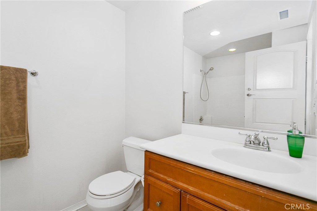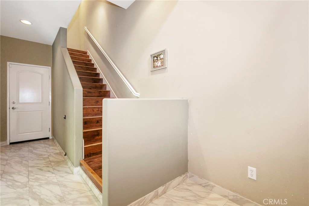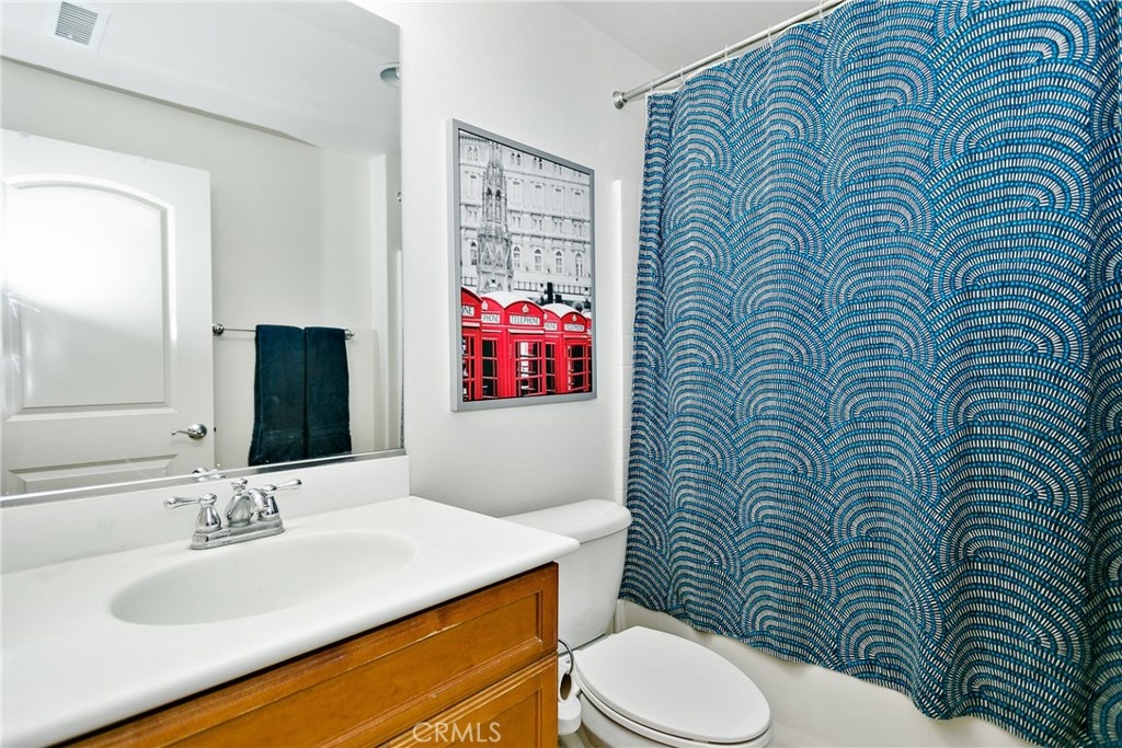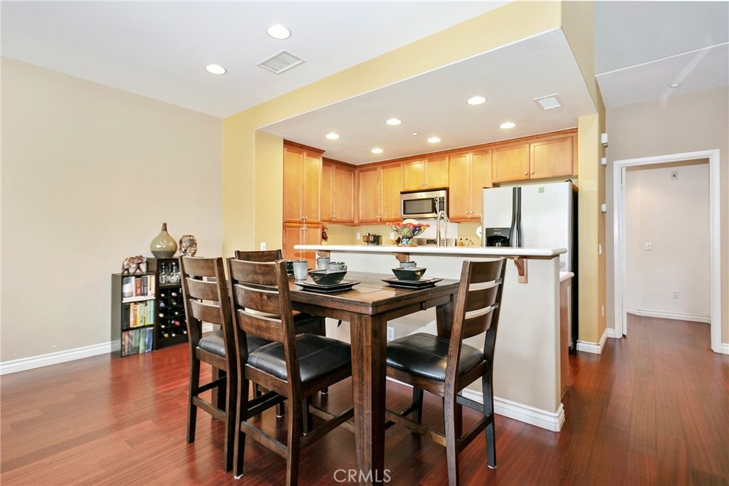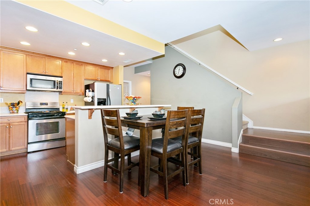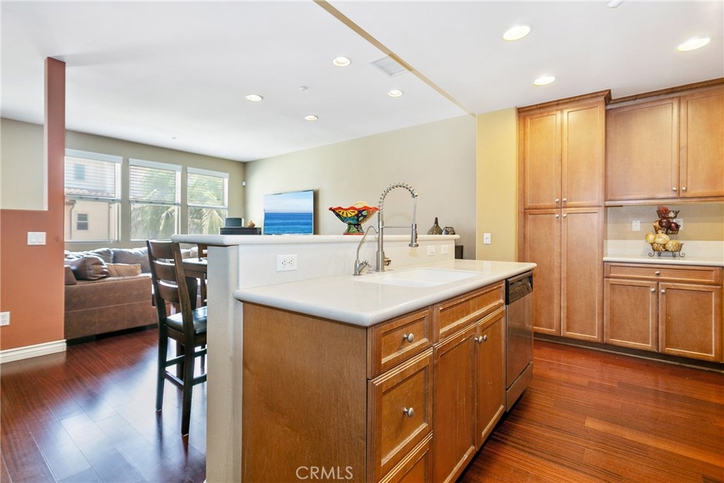 This roomy, versatile floor plan is well located in small, gated enclave known as Avenue E. This newer townhome features two separate masters, high, smooth ceilings, recessed lighting, raised panel doors, and dual paned windows. It's upgraded with wood floors throughout the living areas and in the master bedroom. On the entry level you'll find one bedroom with an ensuite full bath with a slider to the front patio plus access to the two car garage. Up the stairs on the main level are the "greatroom" plus two additonal secondary bedrooms, a full hall bath and full size laundry closet. The open living areas are wide open and flow seamlesslessly. The kitchen has corian counters and a generous amount of wood cabinetry. There's also a large island with bar seating. The living room is brightened with abundant windows that bring in natural light. Upstairs on the third level is the private master suite that overlooks the charming courtyard. Large enough for a kingsize bed it has high ceilings and wood floors. Th ensuite full bath has a large soaking tub and separate shower with a glass enclosure. There are his&hers sinks and a wood vanity with storage. It also has a huge walk in closet! There's a cobbled brick front patio that is accessible through a sliding door in the downstairs bedroom. Close to parks, South Coast Plaza shopping, restaurants and entertainment.