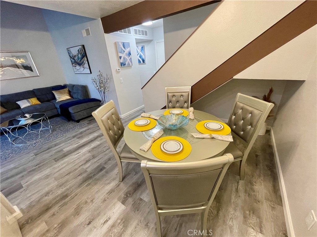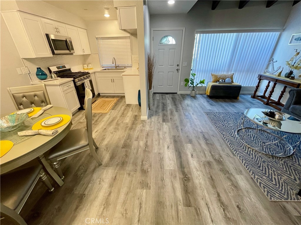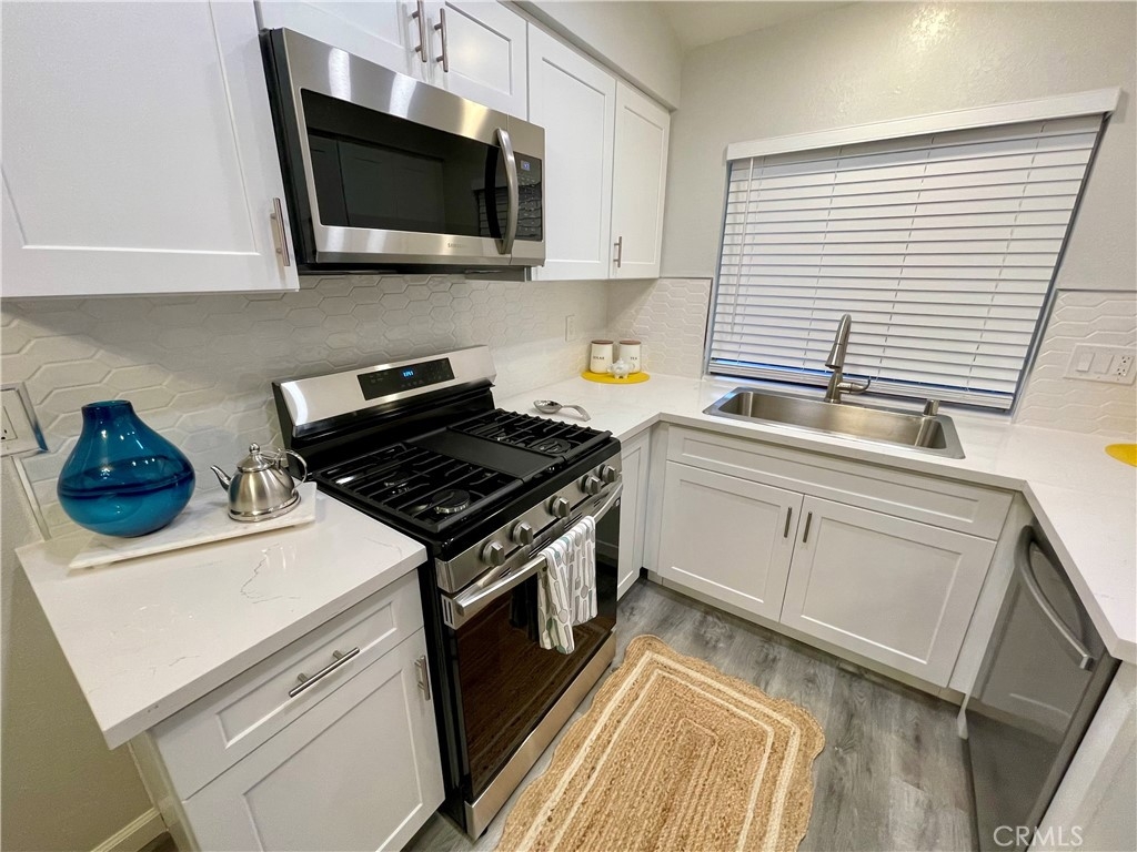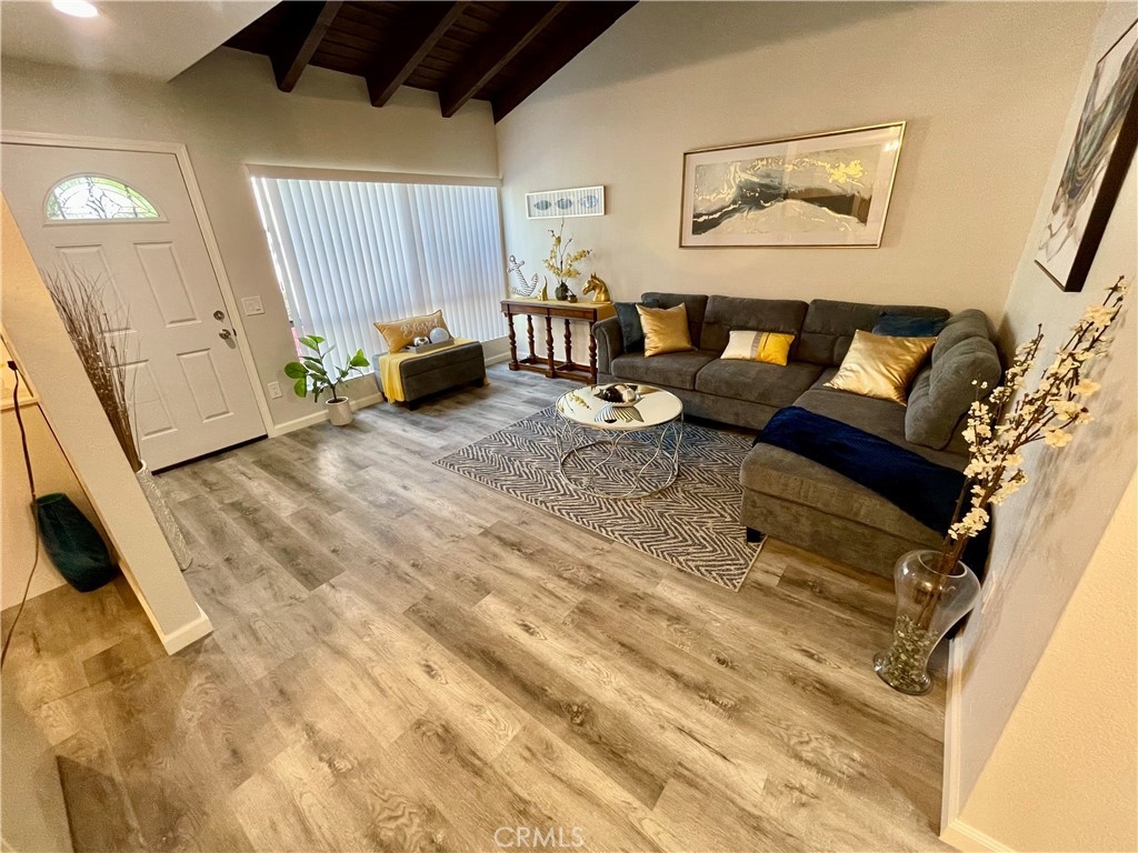 Beautifully upgraded condo in the highly sought after Village Walk community!! Home features 2 spacious bedrooms, 1 1/2 bathrooms, high vaulted ceilings in the living room, luxury waterproof vinyl flooring, quartz kitchen countertops and restroom. Upstairs the primary bedroom has a walk-in closet, and private patio. There is a 2-car attached garage with direct access with laundry hook-ups It is conveniently located near restaurants, parks and South Coast Plaza Mall and walkable distance to the community pool. You won't want to miss this opportunity!