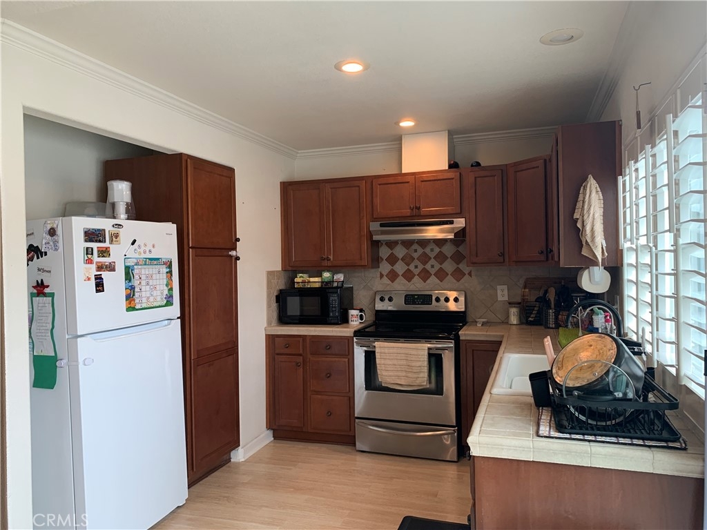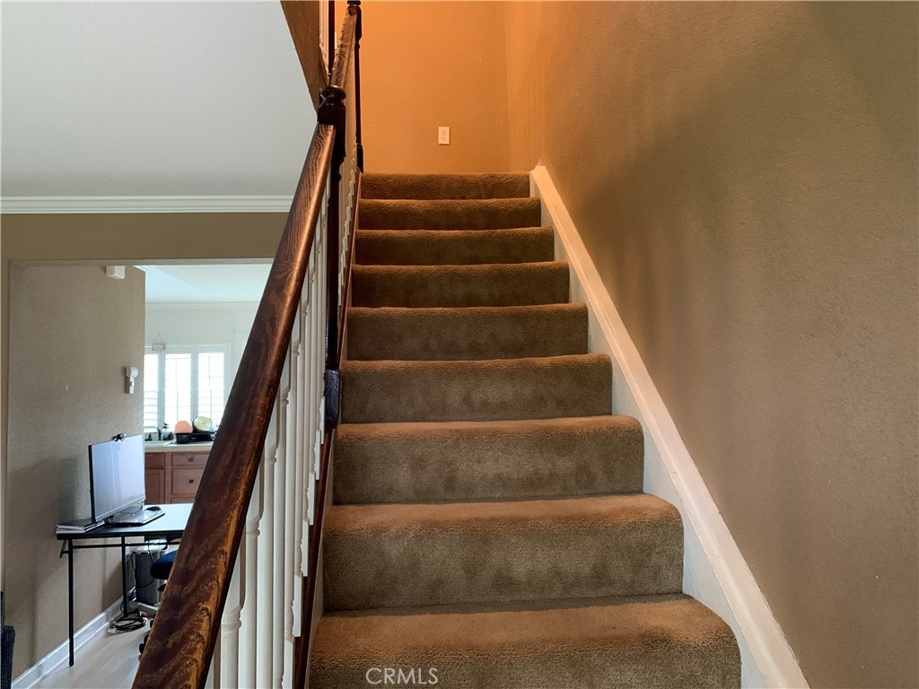 This beautiful two-story, three bedrooms, two baths home is situated in Bradford Place has everything for comfortable living. As you enter the home, you have a living room, bathroom, dining area and kitchen. It features all bedrooms and one full bath upstairs. Enjoy your private backyard with enclosed wood fencing. The patio leads you into your two-car garage with newly replaced roll up garage door with alley access. The windows are dual paned vinyl and there are plantation shutters on every window. The ceilings have been scraped, with crown molding throughout and recessed lighting to make the home bright. The kitchen cabinets have a newer, contemporary look and the counter tops are tiled. The dining area and living areas have clean, sleek laminate wood flooring. Ceiling fan hovers over every room. This South Coast Metro location is close to business complexes, John Wayne Airport, 405 and 55 freeways, South Coast Plaza and world class dining. Within the complex, this home is a very short walk to the common area pools and is extremely quiet. You cannot beat this price for the location and amenities.