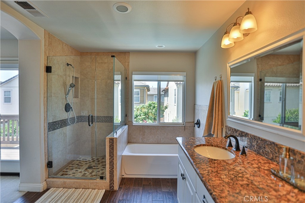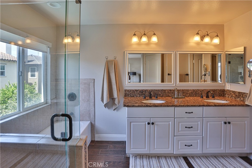 Beautiful home nestled in the secluded gated community of Charleston @ South Coast. Ideally located on one of the community’s best private streets with no homes directly in front, this spacious two-story residence offers 4 bedrooms + loft and 2.5 baths across nearly 2,300 sq ft. A bright, open floor plan welcomes you with a light-filled living room featuring soaring 10-foot ceilings. Family room with fireplace seamlessly connects with the dining area, and an open gourmet kitchen complete with a center island, white cabinetry, granite countertops, stainless steel appliances, and a walk-in pantry. Large sliding doors open to a private backyard retreat featuring a sparkling pool and spa with custom flagstone, raised planters, BBQ area, and an expansive patio—perfect for relaxing or entertaining. Upstairs, an elegant staircase leads to a sunlit landing with a large picture window and a versatile loft, ideal for a home office, library, or additional living space. The spacious primary suite includes motorized shades and a private balcony overlooking the backyard. The ensuite bath features dual vanities, a travertine walk-in shower with frameless glass, a soaking tub, and a large walk-in closet with built-in organizers. Three additional bedrooms offer mirrored wardrobe doors, while the secondary bath includes dual sinks and a full tub/shower. Additional highlights include an upstairs laundry room with ample storage, designer paint, Heirloom Collection hardwood flooring in main living areas, and a durable tile roof. Spacious two-car garage offers direct access to the kitchen and side yard. Recent upgrades include a new pool heater, newer carpet, and epoxy-coated garage floors. Enjoy low HOA dues and a prime location just minutes from South Coast Plaza, Segerstrom Center for the Arts, fine dining, shopping, top-rated schools, and major freeways (405 & 55). OPEN HOUSE SATURDAY APRIL 25TH FROM 11AM - 3PM