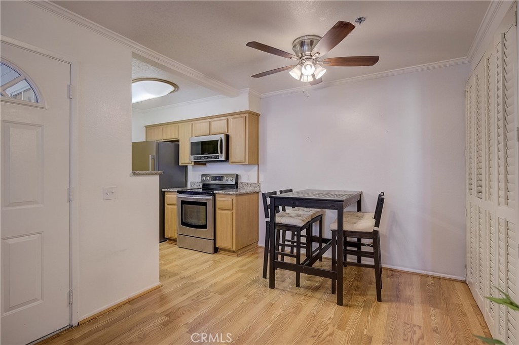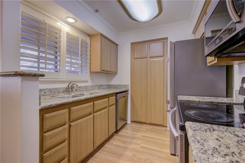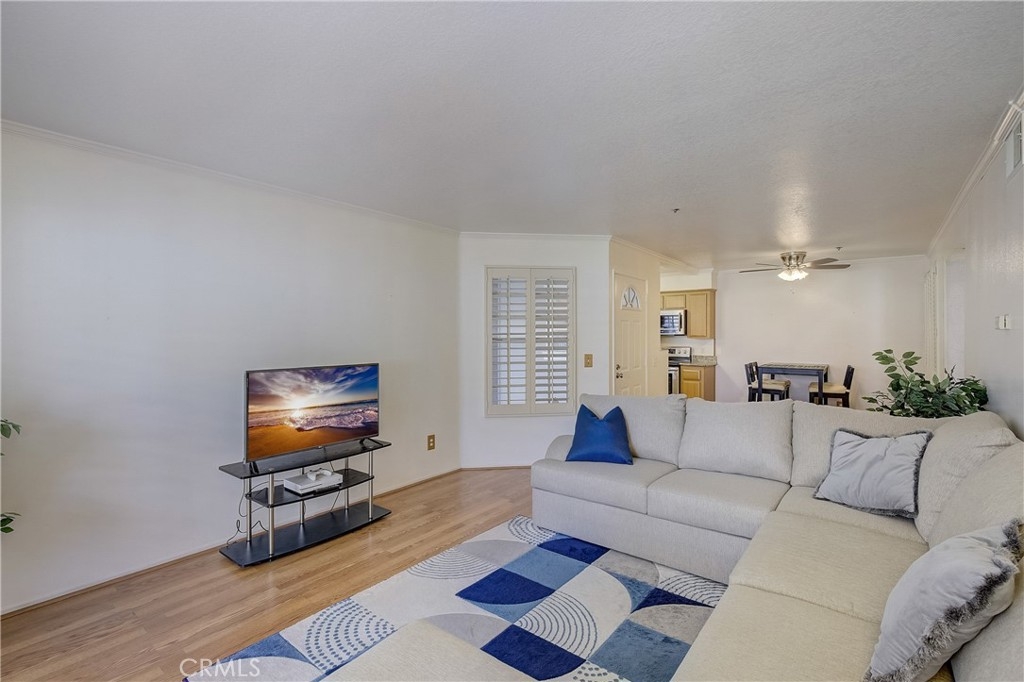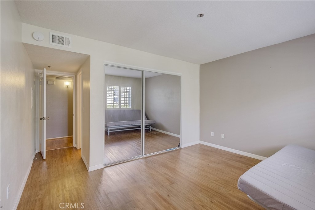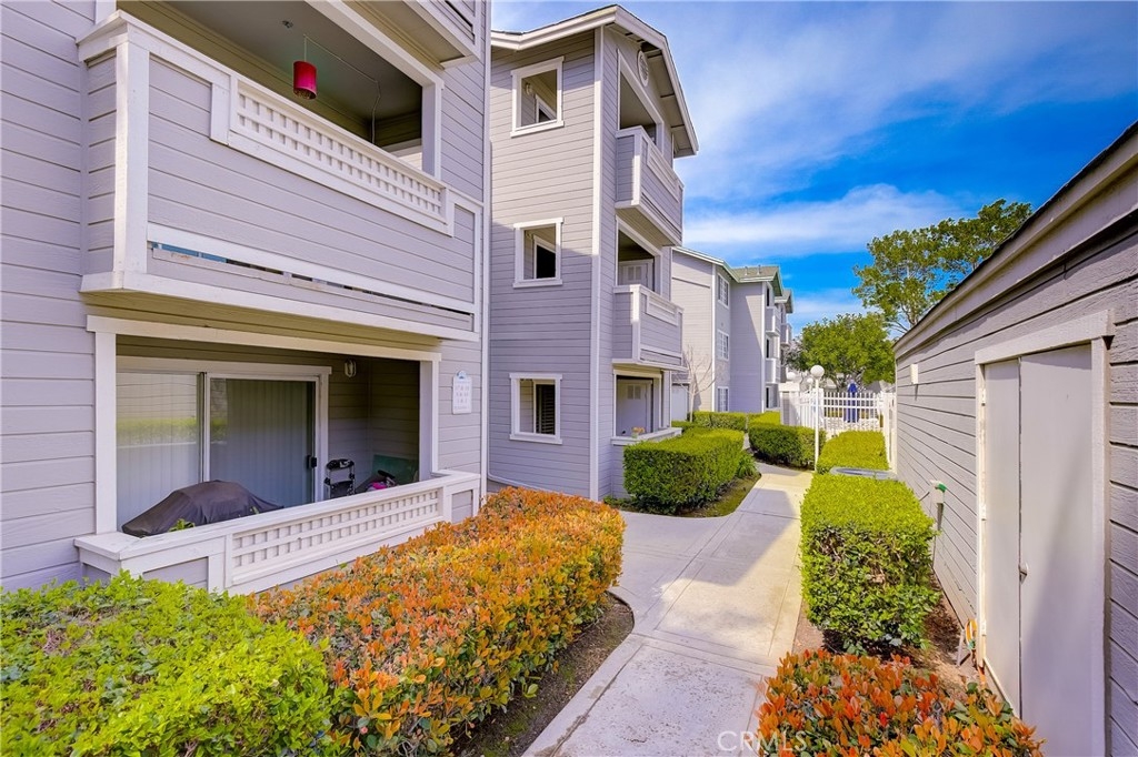 Ground Floor Condo in Gated Community of Chelsea Court. Home features wood shutters, dual primary suites, private patio, and inside laundry room! Enjoy the open floor floor plan with laminate flooring throughout the spacious living area, dining, and kitchen. Off the living room, a sliding glass door leads to your large patio and brings in lots of natural light. The kitchen features updated cabinetry, counters, and stainless steel appliances. Each primary suite is well sized with vinyl flooring, closet space and attached upgraded ensuite bathrooms. 1 car garage with an additional assigned parking space makes parking a breeze! Chelsea Court offers its residents 2 spas, pool, BBQ area, clubhouse, gym and dog park area. Located in the trendy Cosmopolitan area of South Coast Metro. Minutes from OC's Finest Shops, Restaurants, Entertainment, South Coast Plaza, OC's Segerstroms Performing Arts Center, SoCo, Metro Point and more. Do not let this opportunity pass you by!