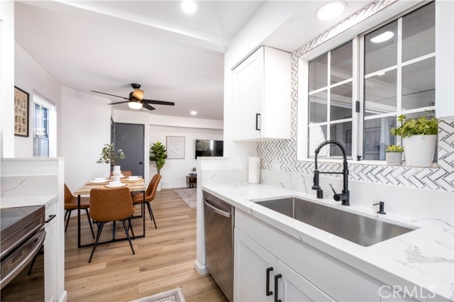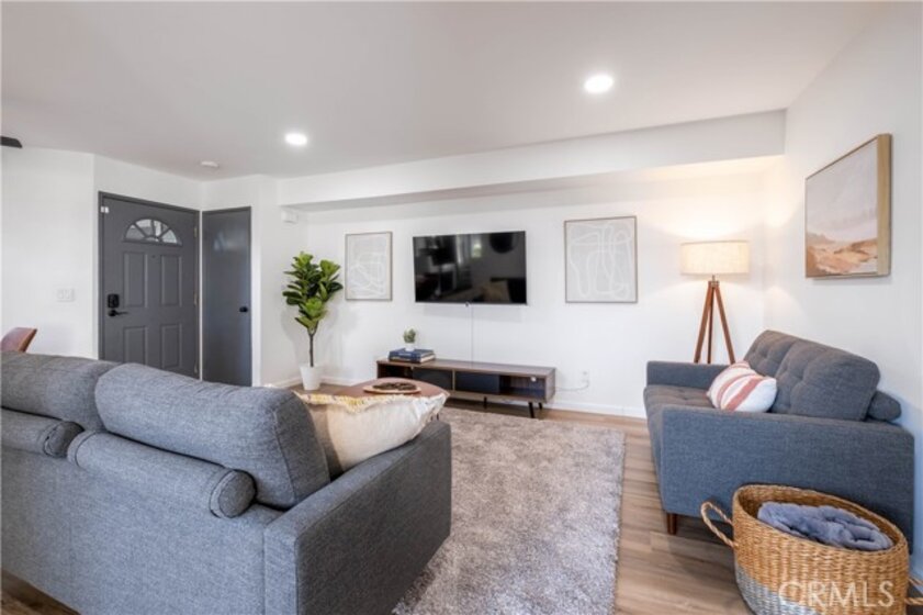 Breeze into this beautifully and recently remodeled ground-floor one-bedroom condo, perfectly situated in the desirable gated community of Chelsea Court. Every detail has been thoughtfully updated to combine modern elegance with everyday comfort. The open and airy floorplan is enhanced by recessed lighting, luxury vinyl plank flooring, and abundant natural light. The newly designed custom kitchen is a true centerpiece, featuring sleek shaker cabinets, quartz countertops, a custom tile backsplash, and stainless-steel appliances—including a range, microwave hood, and dishwasher. The single-basin undermount sink with pull-down faucet adds both style and function. Retreat to your spacious bedroom with a generous walk-in closet, while the remodeled bathroom showcases timeless tile flooring, a shaker vanity with quartz counters, and chic matte black finishes. Convenience is key with an in-unit laundry closet, central heating and air conditioning, and an attached garage. Step outside to enjoy your private patio—ideal for relaxing or entertaining. Chelsea Court offers resort-style amenities including a sparkling pool, two relaxing spas, fitness center, and a BBQ area. Located in the heart of South Coast Metro, this condo is in one of Orange County’s most vibrant neighborhoods. It places you at the epicenter of premier shopping, dining, and entertainment. Indulge in world-class experiences at nearby South Coast Plaza, catch captivating performances at the Segerstrom Center for the Arts, and immerse yourself in the culture at the Tony Award-winning South Coast Repertory. With convenient access to major freeways, including the 405, 55, 73, and 5, the best of Orange County is at your fingertips—from the magic of Disneyland to the sun-kissed shores of its iconic beaches. Don’t miss your chance to own this move-in ready condo blending comfort, style, and convenience in one of Orange County’s most sought-after locations.